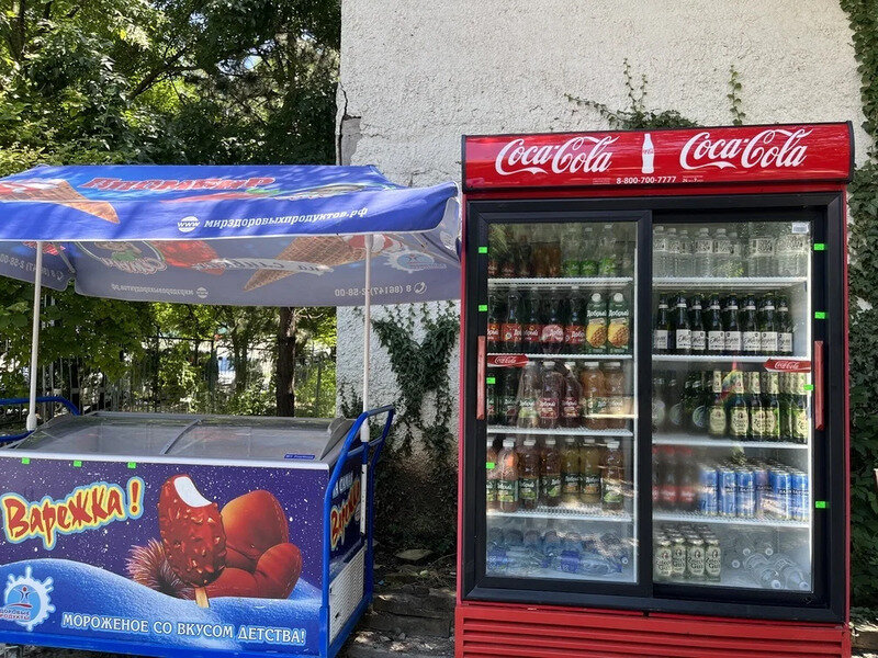 На территории имеется бар и холодильники с прохладительными напитками и мороженным.
