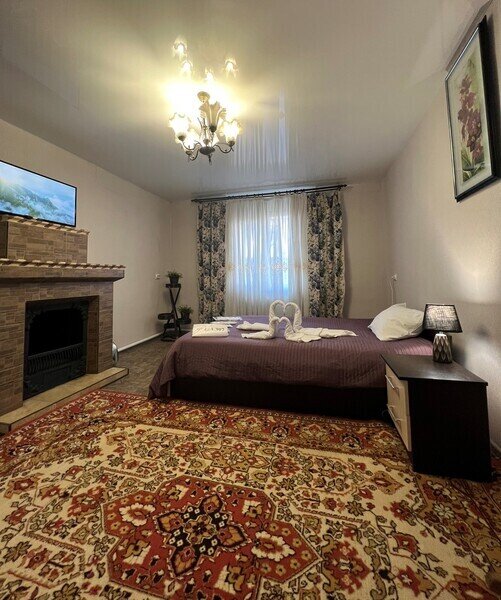 двуспальная кровать, камин. Ванная комната с раковиной, зеркалом, 2 отдельных туалета