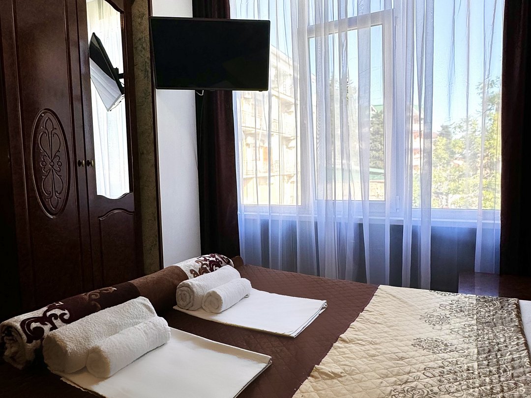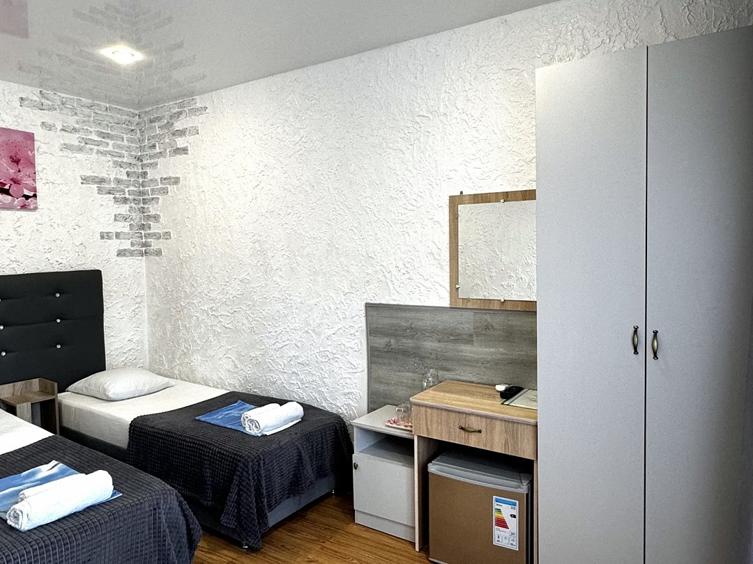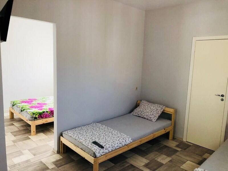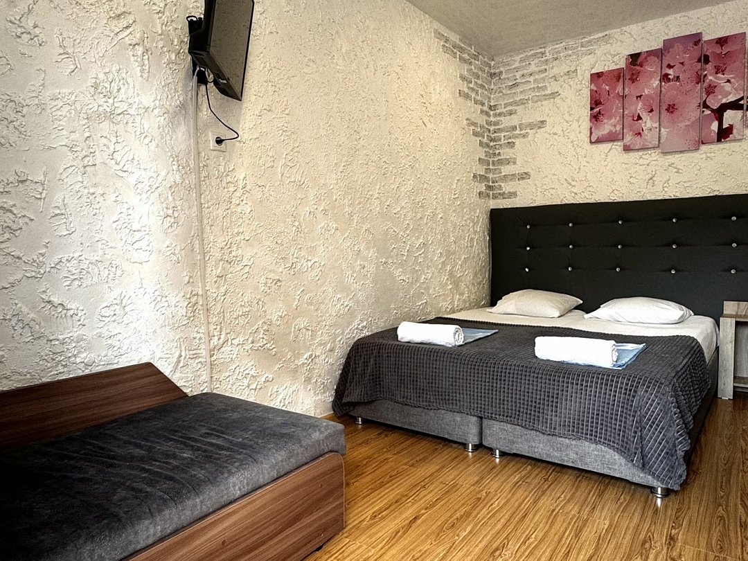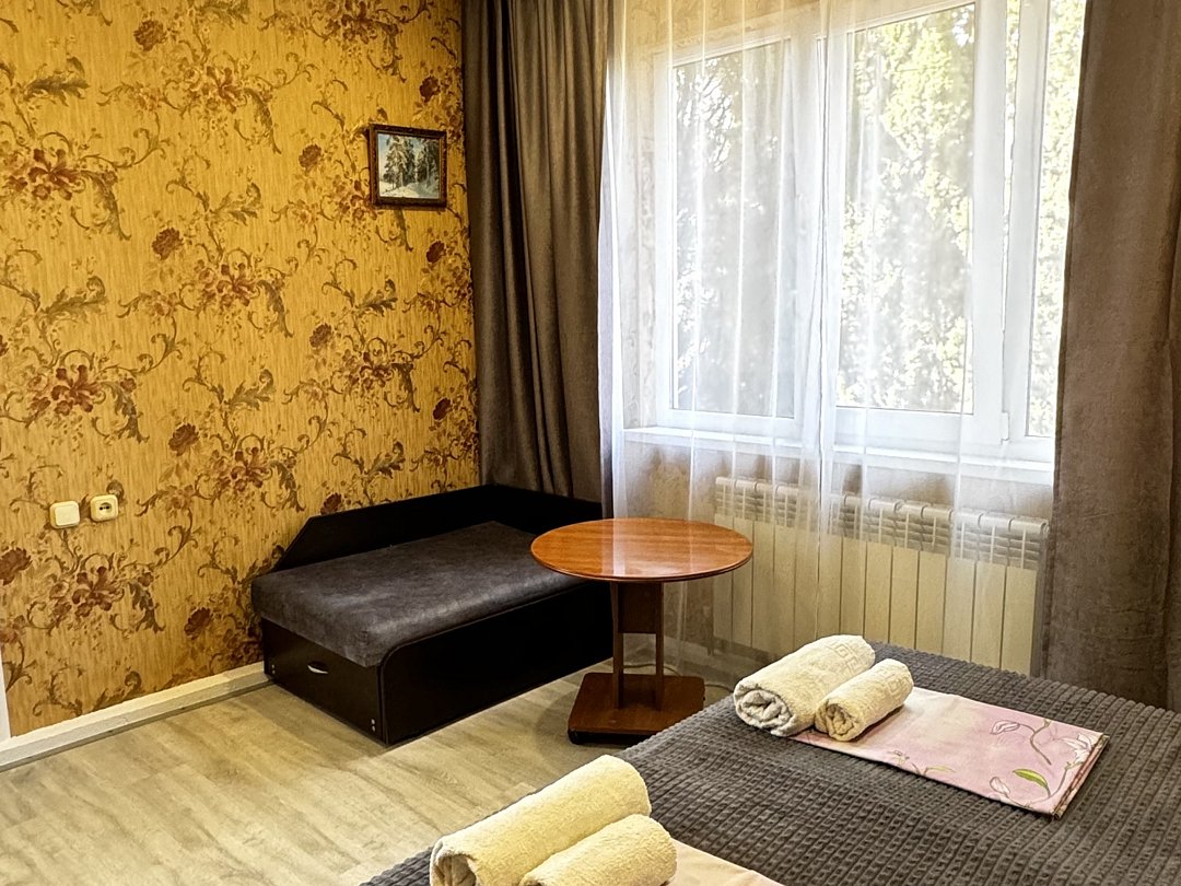 Уютный номер Четырехместный эконом "Комфорт+" располагается в самом центре Адлера на первой береговой линии с развитой инфраструктурой досуга и развлечений в пешей доступности. В указанном номере предоставляется: ТВ, сплит-система, холодильник, чайник, фен, средства гигиены, все пляжные принадлежности. На закрытой территории расположены лаундж-зона, детская площадка, платная парковка авто.В номере