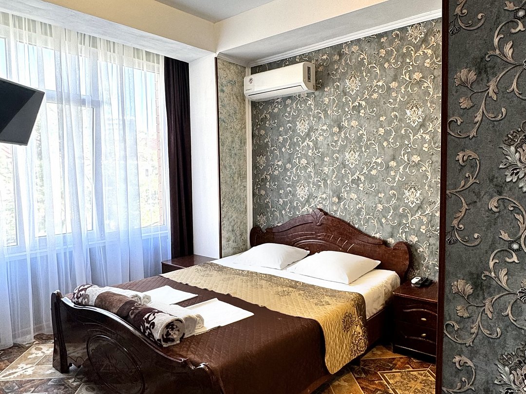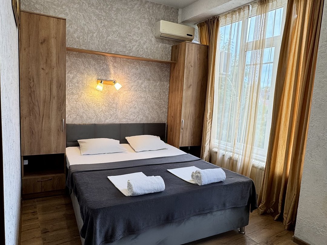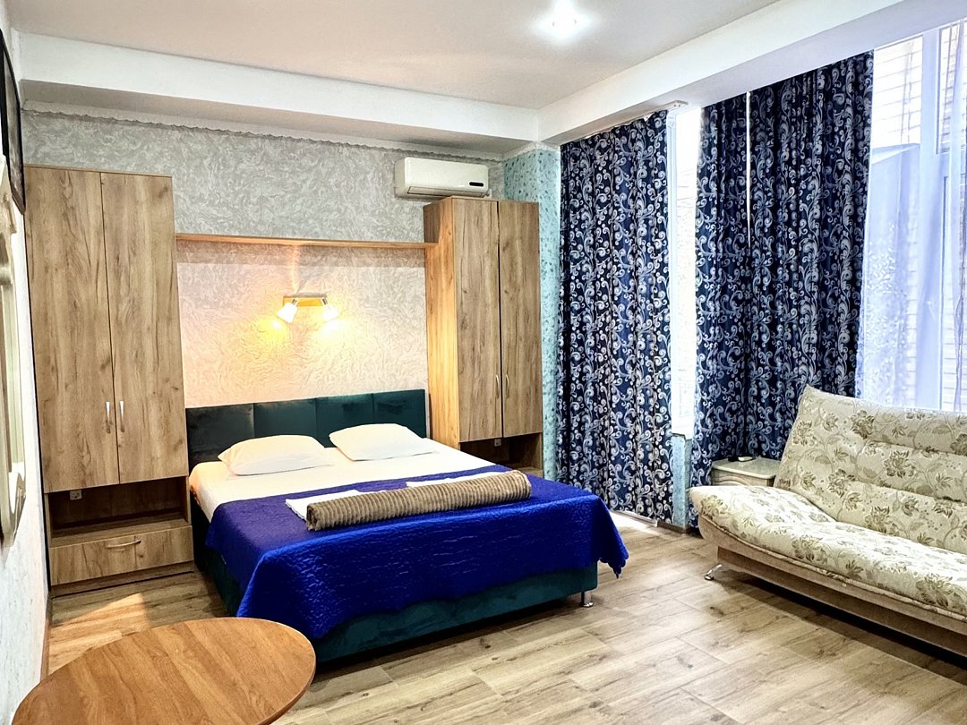 Уютный номер категории Люкс для двоих располагается в самом центре Адлера на первой береговой линии с развитой инфраструктурой досуга и развлечений в пешей доступности. В номере категории «Люкс» предоставляется: чайник, посуда, душ, туалет, балкон, ТВ, сплит-система, холодильник, чайник, фен, средства гигиены, все пляжные принадлежности. На закрытой территории расположены лаундж-зона, детская площадка, платная парковка авто по согласованию.В номере