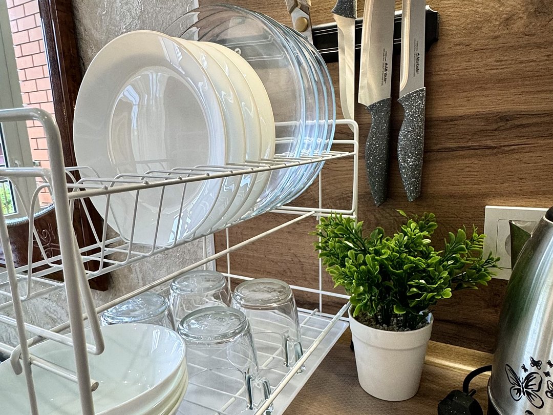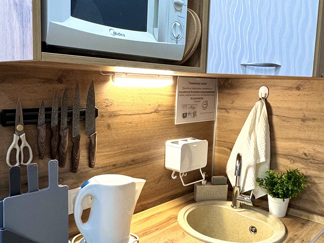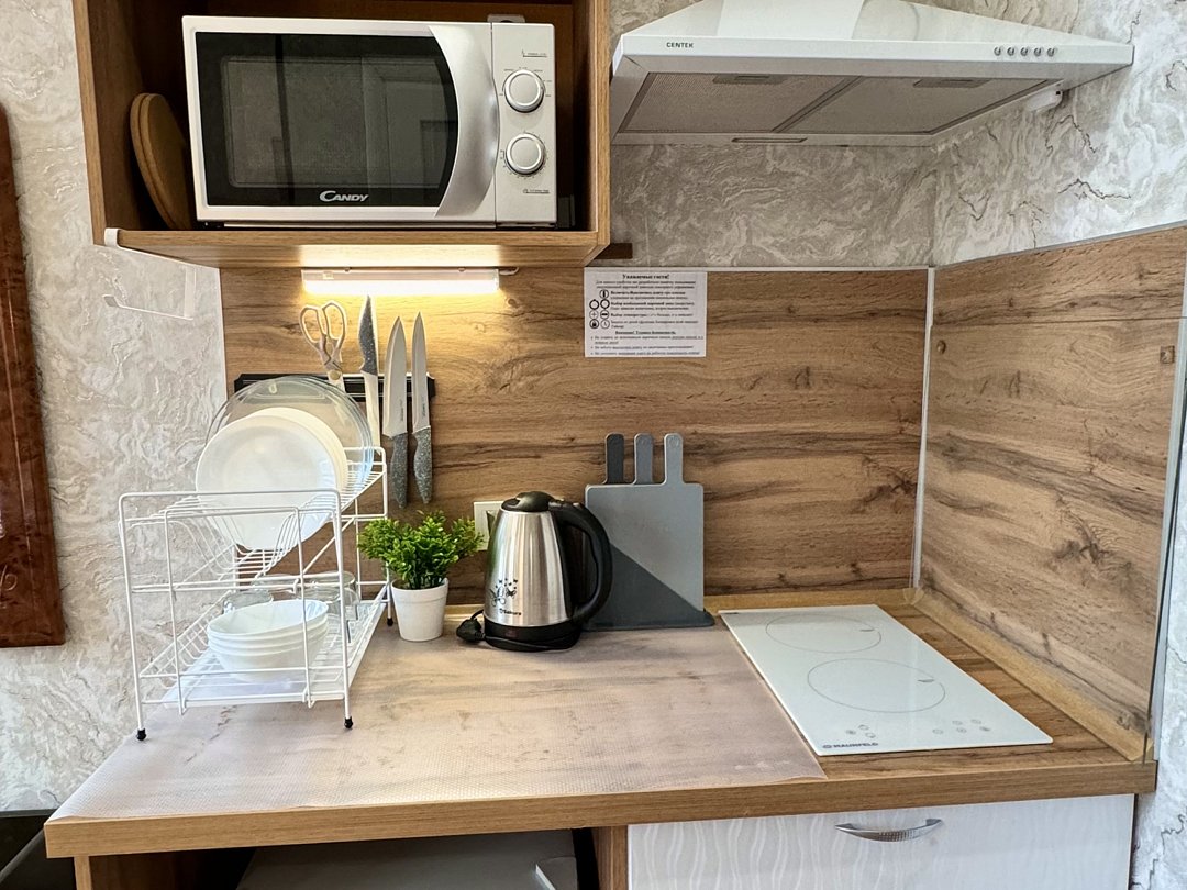 Кухня общая на 1 этаже, вроде хорошая, ею не пользовались, для перекусов нам хватило чайника и холодильника в номере, а так рядом есть прекрасные кафе и столовые)
