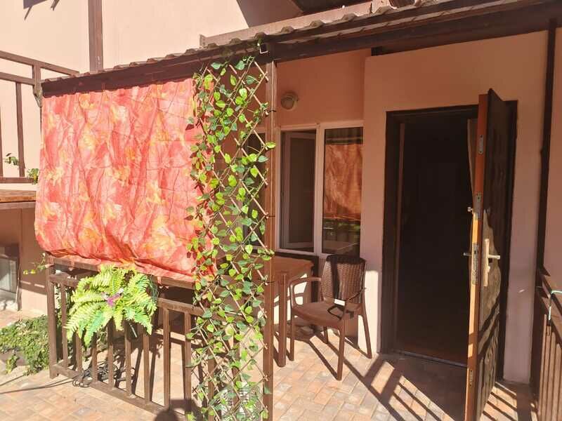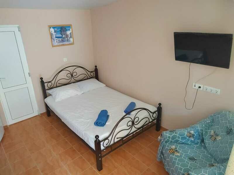 Стандарт 3х местный с отдельным входом и террасой (1 двуспальная кровать и кресло кровать мини-холодильник, телевизор, сплитсистема, туалет, душ, умывальник, терраса летняя мебель)Есть возможность установить за дополнительную плату доп.место (раскладушка).