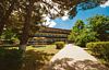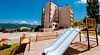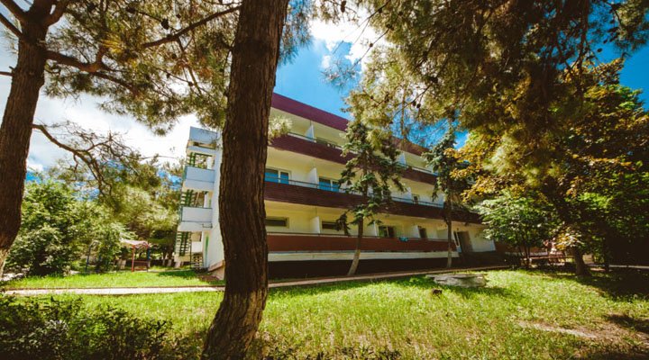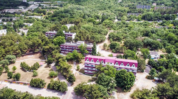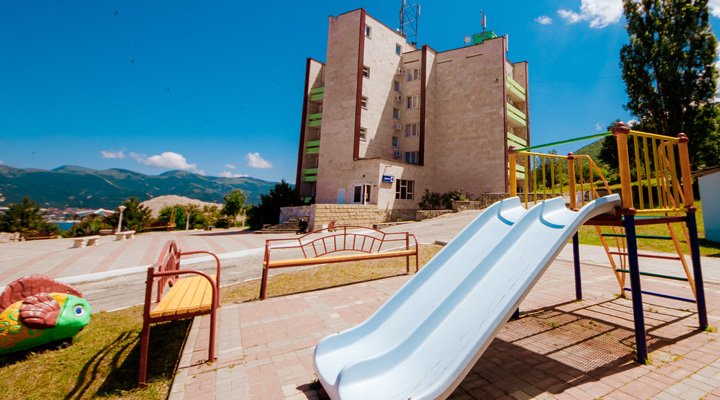 На территории пансионата площадью почти 8 гектаров грамотно организованы две зоны: комфортабельный пятиэтажный корпус для отдыхающих с детьми и отдельные корпуса для детского оздоровительного лагеря.