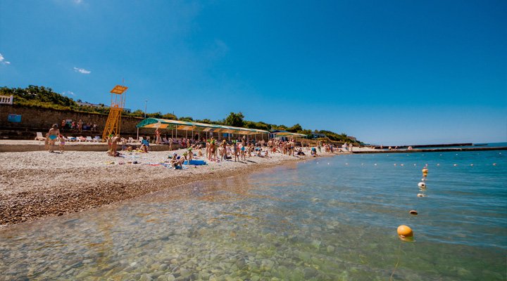 Всего в 100 метрах от корпусов расположен благоустроенный галечный пляж, входящий в единый архитектурный ансамбль пансионата. Он оборудован всем необходимым для комфортного отдыха: лежаками, тентами, спасательной станцией, медицинским пунктом, раздевалками, душевыми и туалетами. За безопасностью купающихся детей внимательно следят спасатели.
