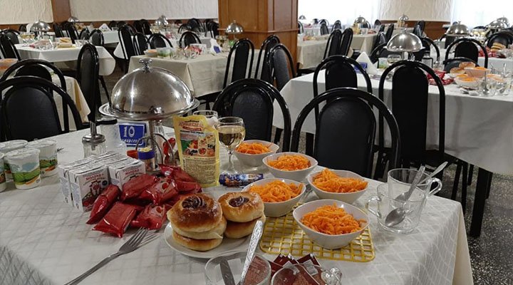 В пансионате организовано полноценное, качественное, сбалансированное 4-разовое (комплексное) питание для отдыхающих и 5-разовое питание для детей, отдыхающих в лагере. В рационе ежедневно свежие фрукты, овощи, молочная продукция, собственная свежая выпечка. При закупке продуктов предпочтение отдается местным производителям. Введен элемент «шведского стола», где каждый гость может выбрать для себя понравившиеся овощные салаты и холодные супы (окрошка, свекольник).