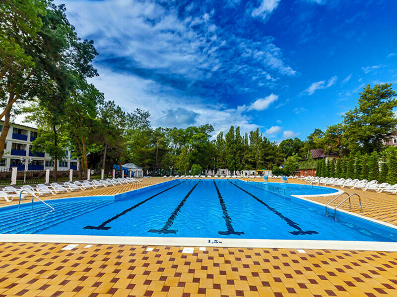 Тип бассейна: открытый бассейнРядом с бассейном: шезлонгиРазмеры: 12.5 x 25 мПлощадь: 313 м²Пользование бассейном для отдыхающих в пансионате бесплатно.