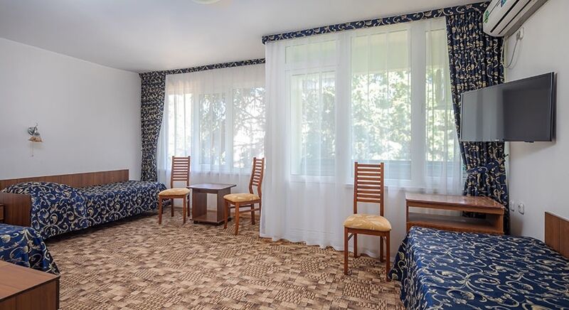 На площади в 4 гектара расположились 5 корпусов, способные принять более 800 человек единовременно в номерах различной вместимости. В комплект стандартного оснащения номера входит кондиционер, телевизор, холодильник. Номера светлые и просторные, с современным, легким дизайном, удобно оснащенные. В каждом номере есть балкон.