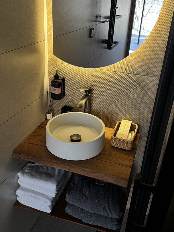 - для каждого гостя: по 2 полотенца, халаты, индивидуальные косметические и зубные наборы, средства гигиены, фен.