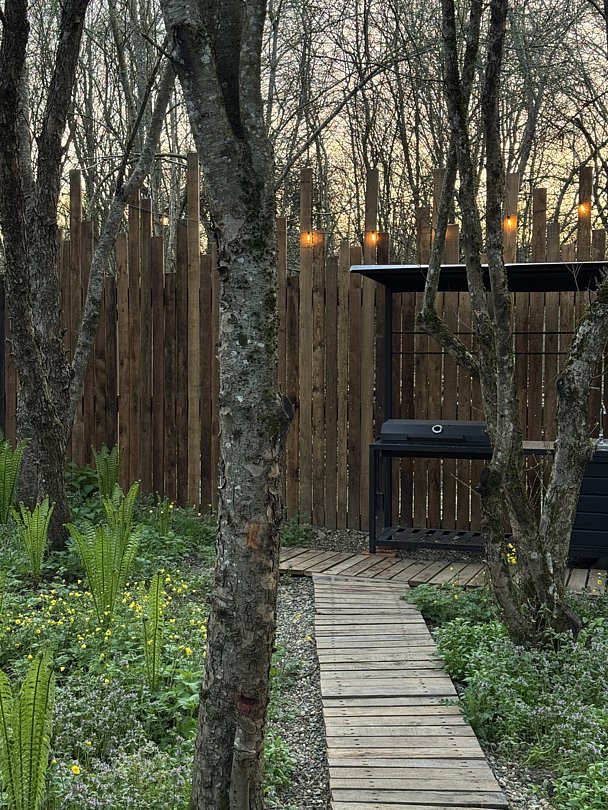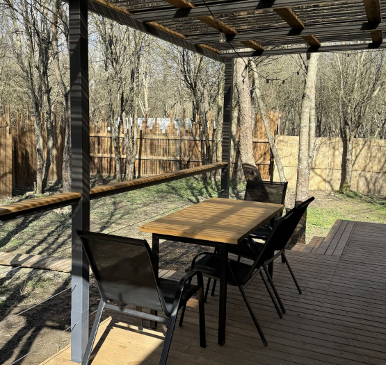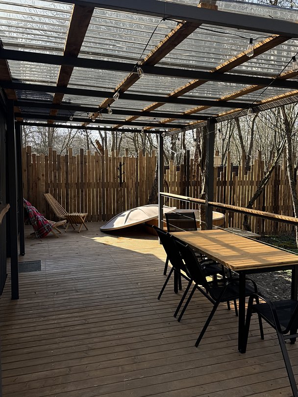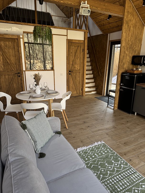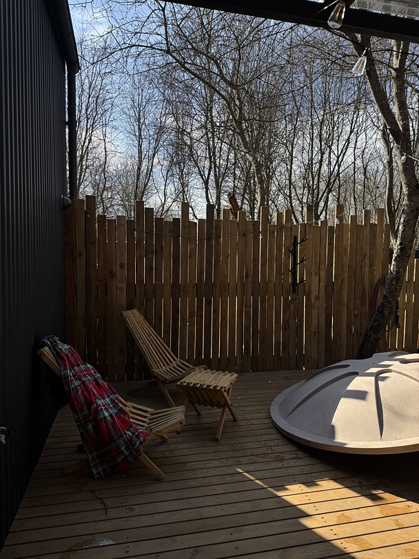 На территории для вашего отдыха подготовлены: горячая купель на дровах, мангальная зона и уютная, крытая терраса с садовой мебелью. Оборудованы 9 дорожек для игры в мини-гольф. Гости могут воспользоваться бесплатной парковкой, оснащенной камерами видеонаблюдения.