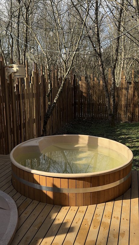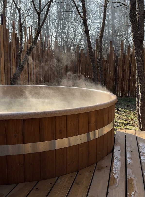 Горячая расслабляющая купель. Одной топки хватит на 4-6 часов (в зависимости от времени года).