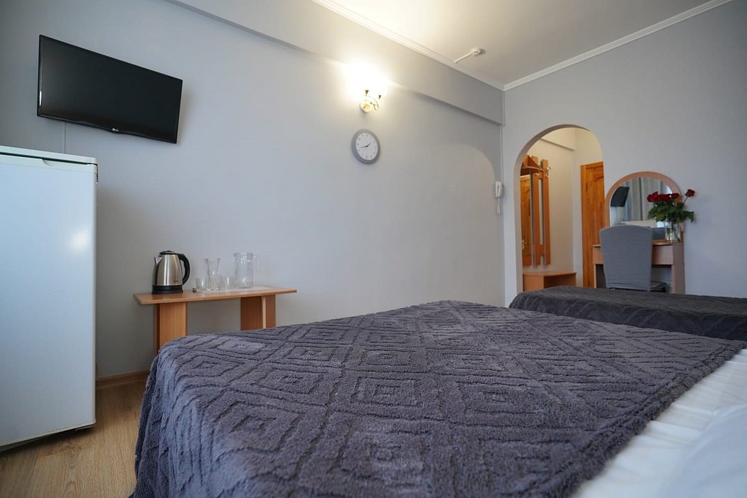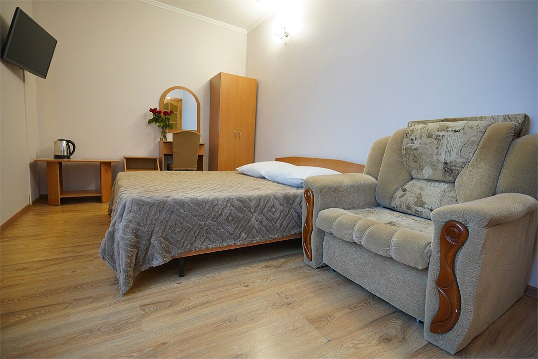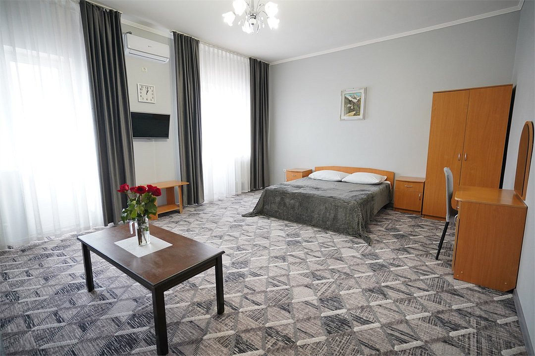 К размещению предлагаются номера различных типов. Внутри оборудованы спальные места с двуспальными и односпальными кроватями, шкафы для одежды, диваны, журнальные и прикроватные столики. Все комнаты оснащены кондиционерами и телевизорами, в каждом номере предусмотрен отдельный санузел.