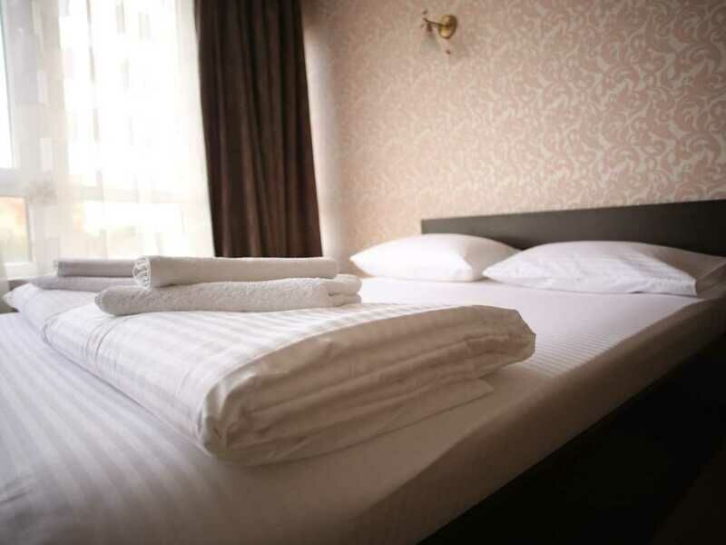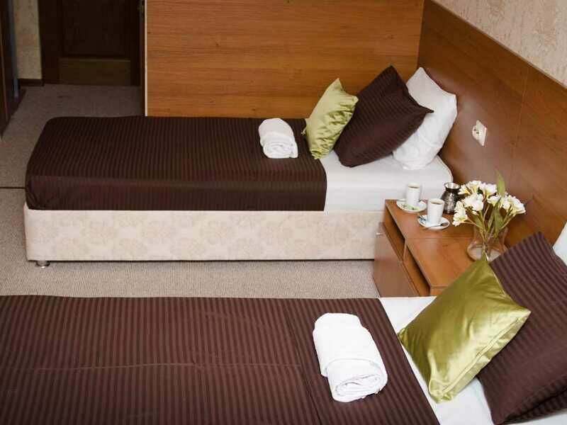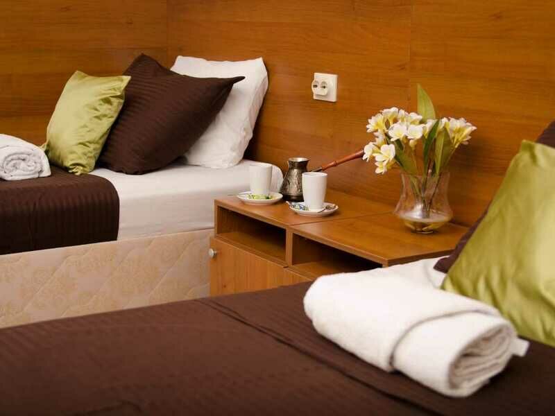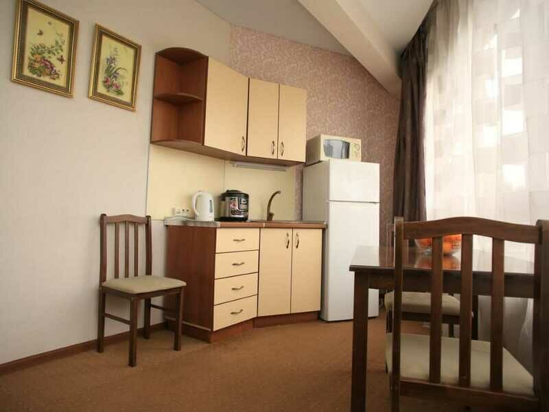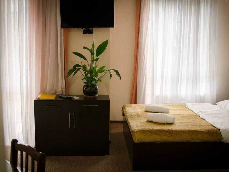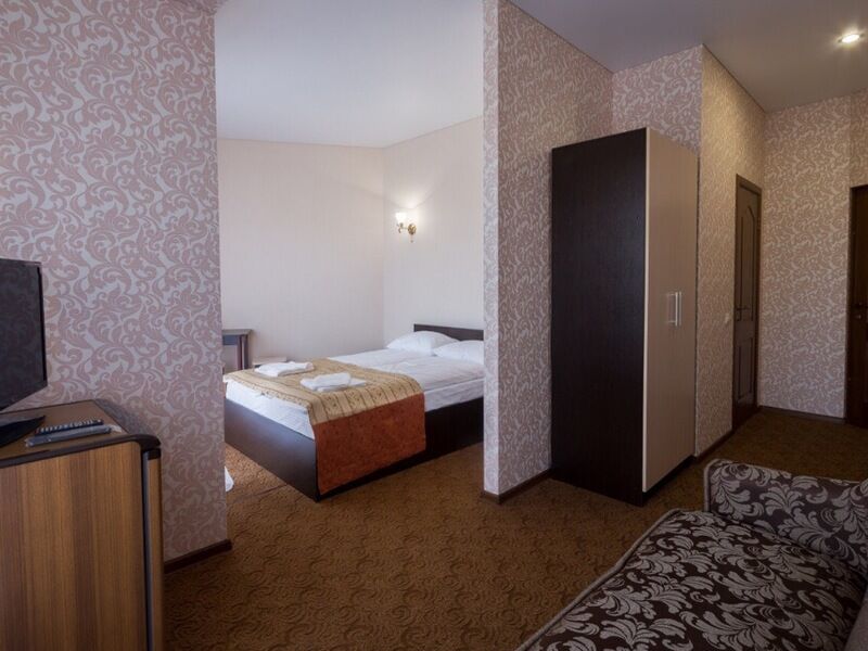 Трехэтажный корпус отеля расположен на тихой зеленой улице. Гостей ожидают номера категории Стандарт, Апартаменты, Семейный. Интерьеры номеров выполнены в приятной преимущественно пастельной цветовой гамме. В каждой комнате имеется собственный санузел, кондиционер и вся необходимая бытовая техника — телевизор, холодильник, фен. Апартаменты и Семейные номера оснащены кухней.