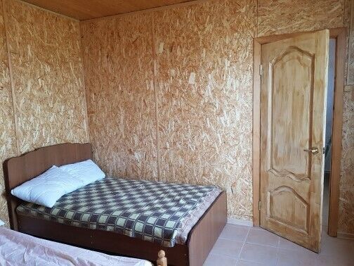В номере: 3 односпальных кровати и 1 1,5-спальная, большой холодильник, сплит. Удобства на улице.