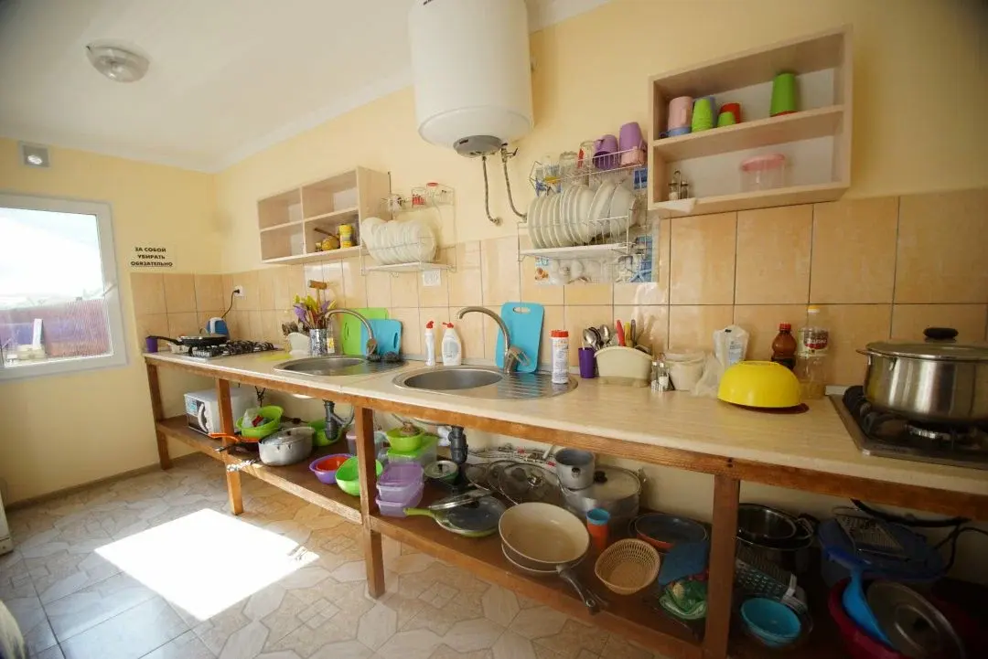 Семейный отдыхДостоинстваЕсли приходить в номер исключительно ночевать, то вариант неплохой. Все базовые удобства имеются, кухня общая. До моря минут 10 своим ходом.