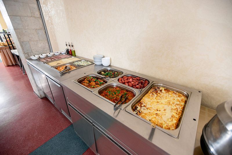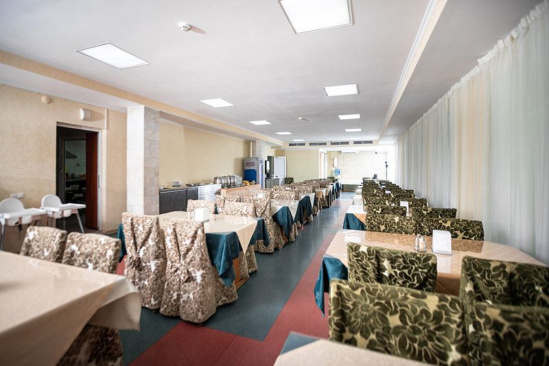 Для гостей пансионата организовано питание в уютном обеденном зале по системе «шведский стол» в сезон и «комплексное питание» в период межсезонья. Максимальная вместимость зала — 76 человек. Уютная атмосфера оставит приятное впечатление!