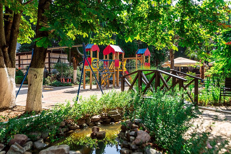На территории пансионата есть вся необходимая инфраструктура для семейного отдыха