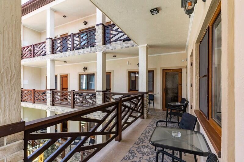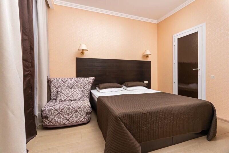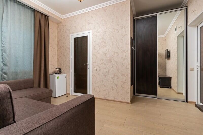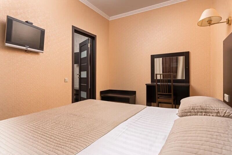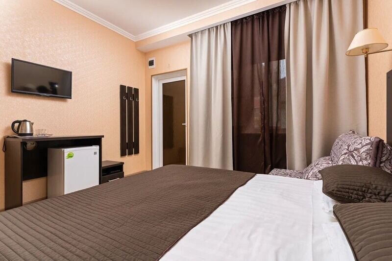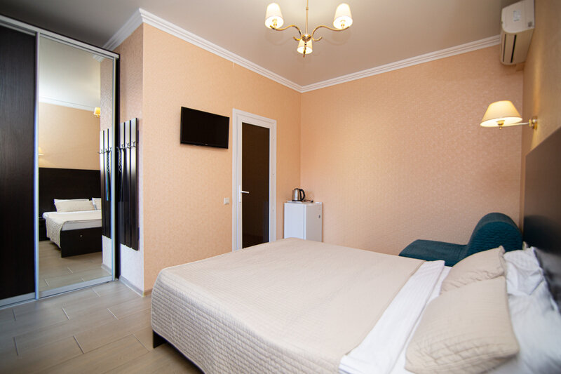 Номера полностью оборудованы для комфортного проживания: санузел, телевизор, мини-холодильник, кондиционер и чайник есть в каждом номере.