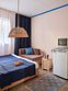 Включают в себя спальные места (двуспальная и односпальные кровати или двуспальная кровать и раскладное кресло), холодильник, телевизор, кондиционер, с/у в номере, шкаф, небольшой столик и тумбочка, зеркало.