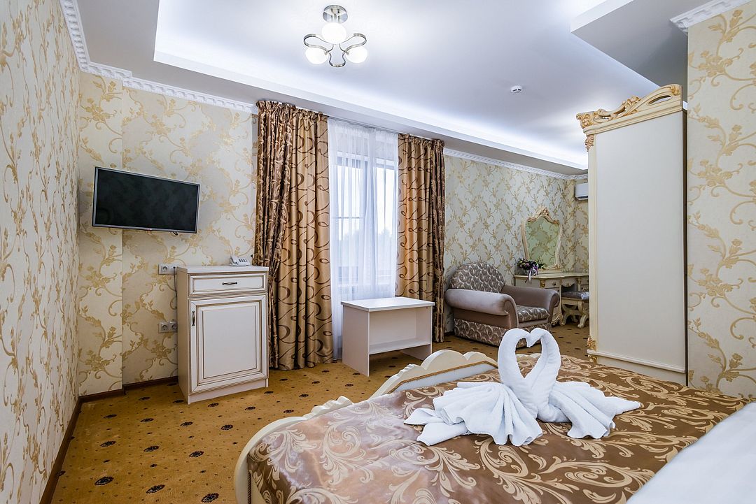 Семейный отдыхДостоинстваБронировали номер «люкс». В комнате очень красивая кровать, есть кондиционер. Большая ванная комната. Можно посмотреть график уборки на ближайшую неделю. Есть собственный бассейн и спа-зона, бесплатные шезлонги. На завтраке маленький выбор. Рядом есть рестораны, расположен в курортной зоне. Есть бесплатная автостоянка.