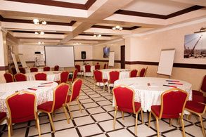 В цокольном этаже расположилось уютное кафе, где ежедневно для гостей сервируется вкусный и полезный завтрак, обед и ужин. Здесь же находится многофункциональный зал, который отлично подойдет, как для проведения семинара или небольшой конференции (до 50 человек), так и для закрытой вечеринки.