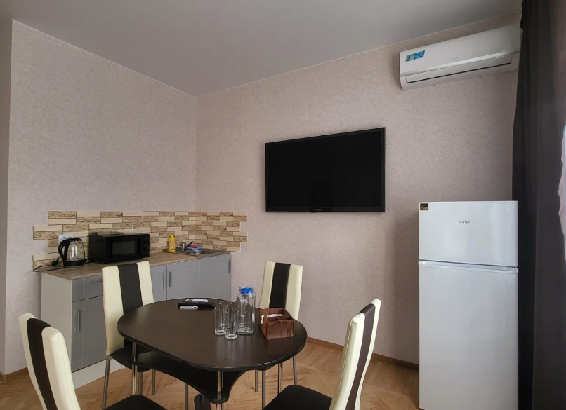 Просторный номер со всеми удобствами, с собственной ванной комнатой, мини-кухней для комфортного проживания до 4 человек.