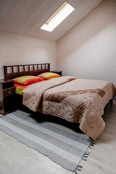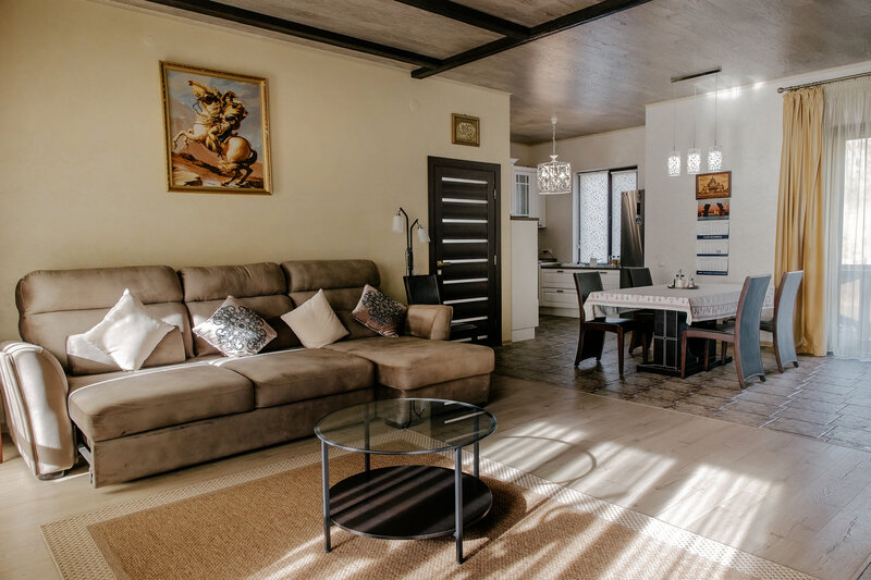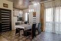 Таунхаус, стилизованный под альпийское шале, разместился в окружении хвойного леса и гор. Внутри – 6 просторных спален, кухня-гостиная с камином, 3 санузла с ванной или душевой кабиной, также есть балкон и меблированная терраса. Такой дом отлично подойдет для большой семьи или дружной компании, желающий насладиться гармонией с природой. Таунхаус оснащен всей необходимо мебелью и техникой: есть плита, духовой шкаф, электрочайник, холодильник, посудомоечная машина, микроволновка, кондиционер, утюг, фен, стиральная машина.