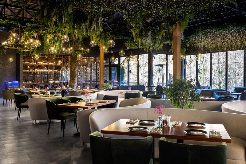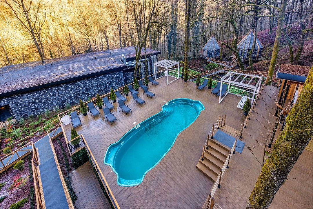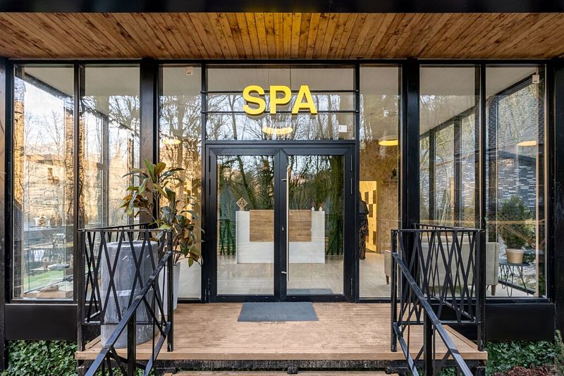 - посещение SPA-центра с открытым подогреваемым бассейном, русской баней на дровах (общая и для индивидуальных парений), relax-зоной с камином, а также чан с горячей водой под открытым небом
