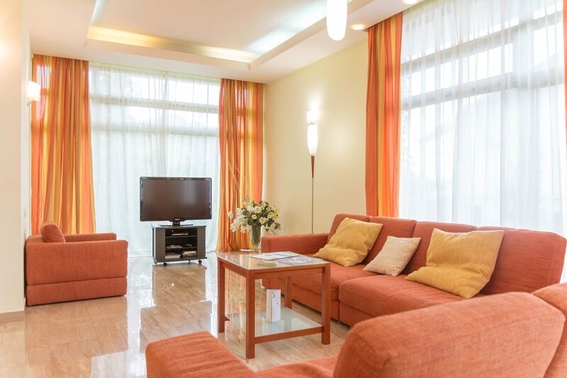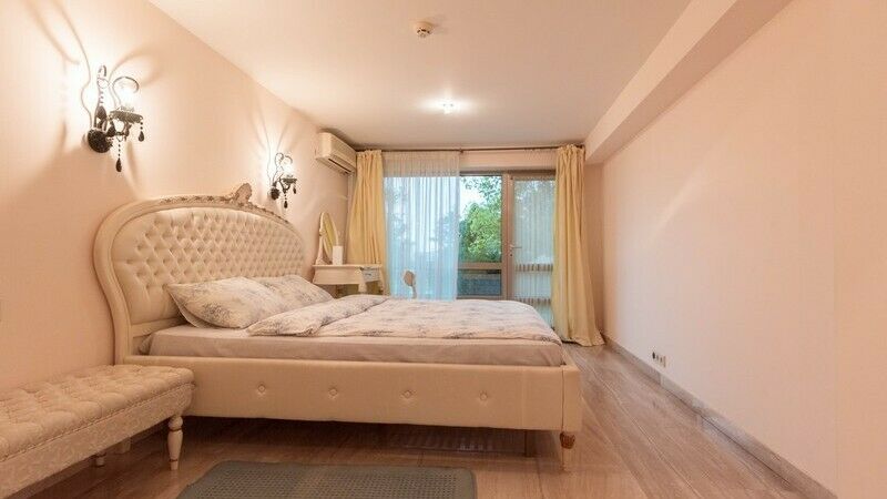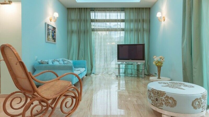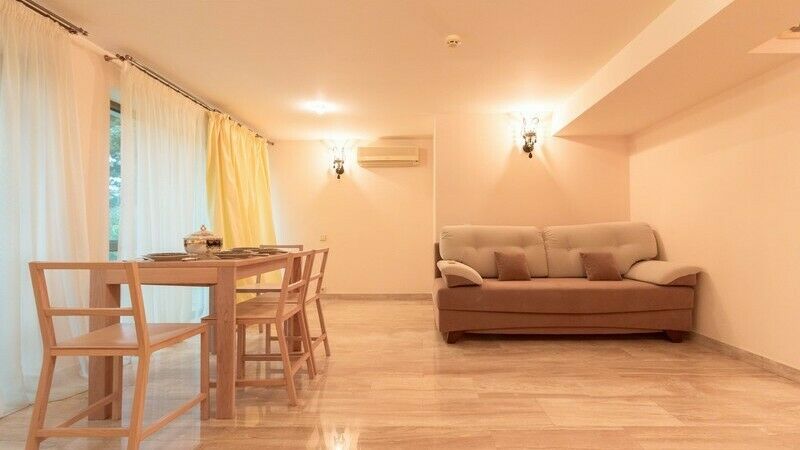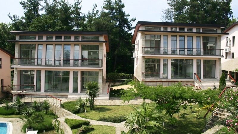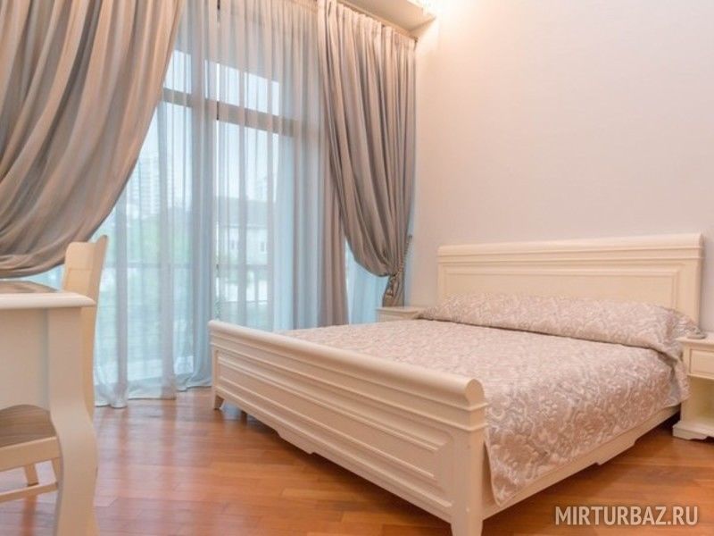 С трех сторон дом окружен застекленным панорамным балконом, взору открываются все прелести морского побережья. Во дворе дома удобно расположены зоны отдыха: барбекю, взрослый и детский бассейны, теннисный корт, зона отдыха с шезлонгами в оазисной парковой зоне. До моря можно добраться пешком, так как расстояние до моря 550 метров. Ресторан в непосредственной близости. Для тех, кто предпочитает домашнюю кухню, имеется полностью укомплектованная кухонная зона с микроволновой печью, духовой камерой, плитой, электрочайником.