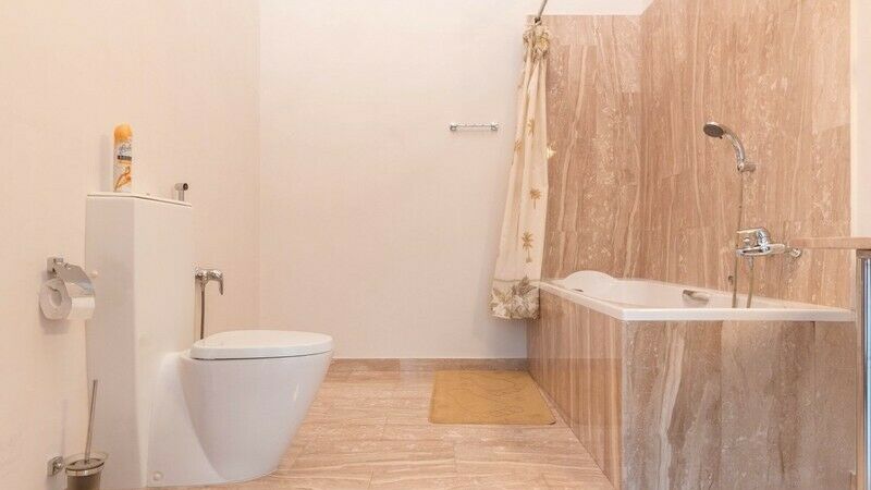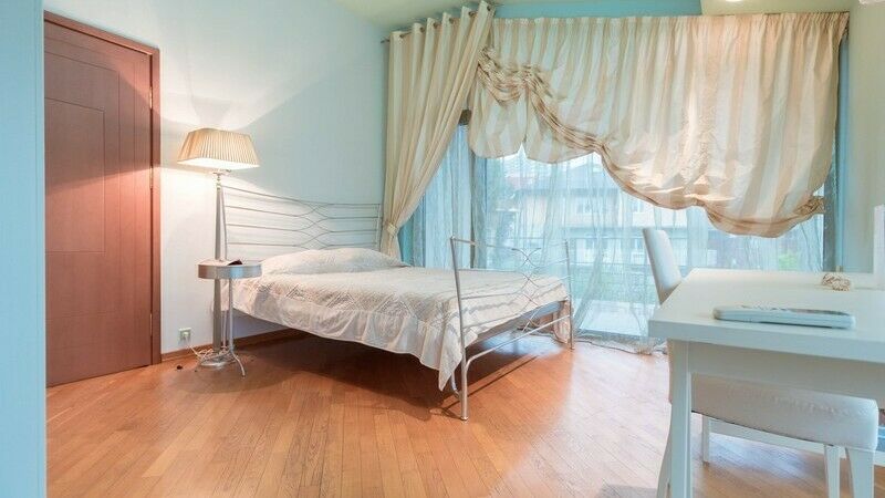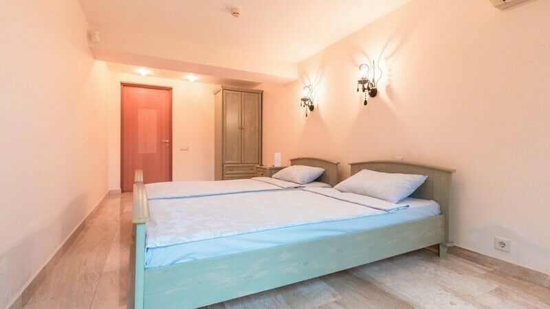 В две спальни имеется отдельный вход. Кроме этого на каждом этаже имеются санузел с ванной, в спальнях удобные и мягкие кровати, кресла, стиральная машина, утюг, гладильная доска, полный комплект постельного и гигиенического белья и многое другое, что пригодится для комфортного пребывания. Личные вещи можно разместить в гардеробной комнате.