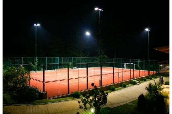 В вечернее время площадка освещается 4-мя прожекторами. Мяч в игровой зоне удерживается 3-х метровым ограждением.
