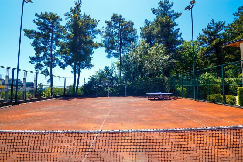 Спортивная площадка Royal Hills оборудована двухслойным профессиональным покрытием. Литая, бесшовная укладка композиционной полиуретановой смеси идеально подходит для занятий динамичными видами спорта.