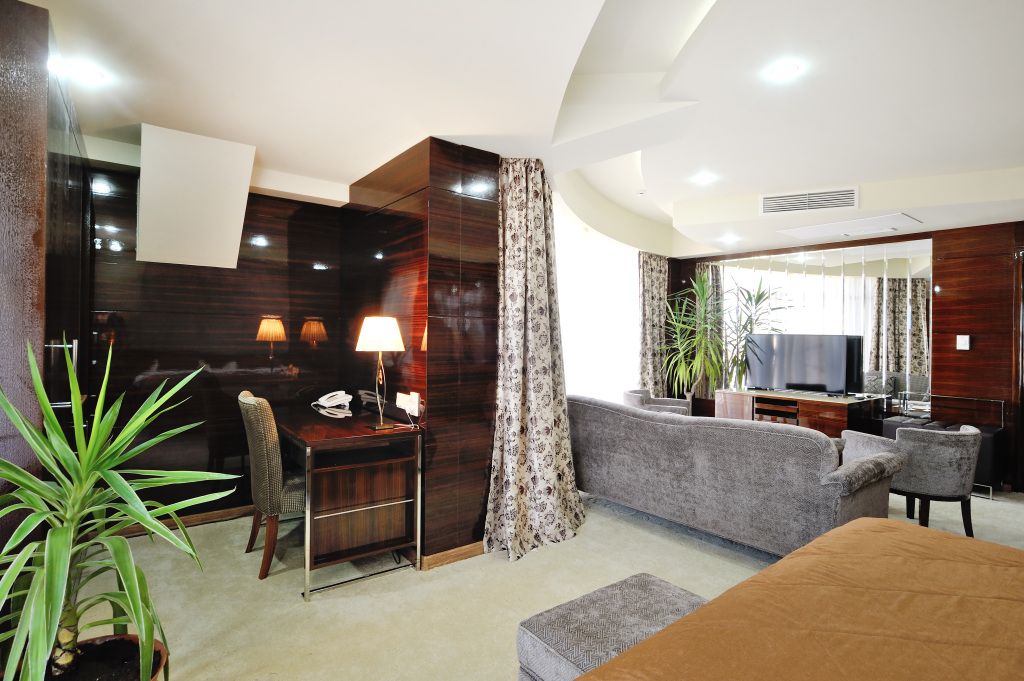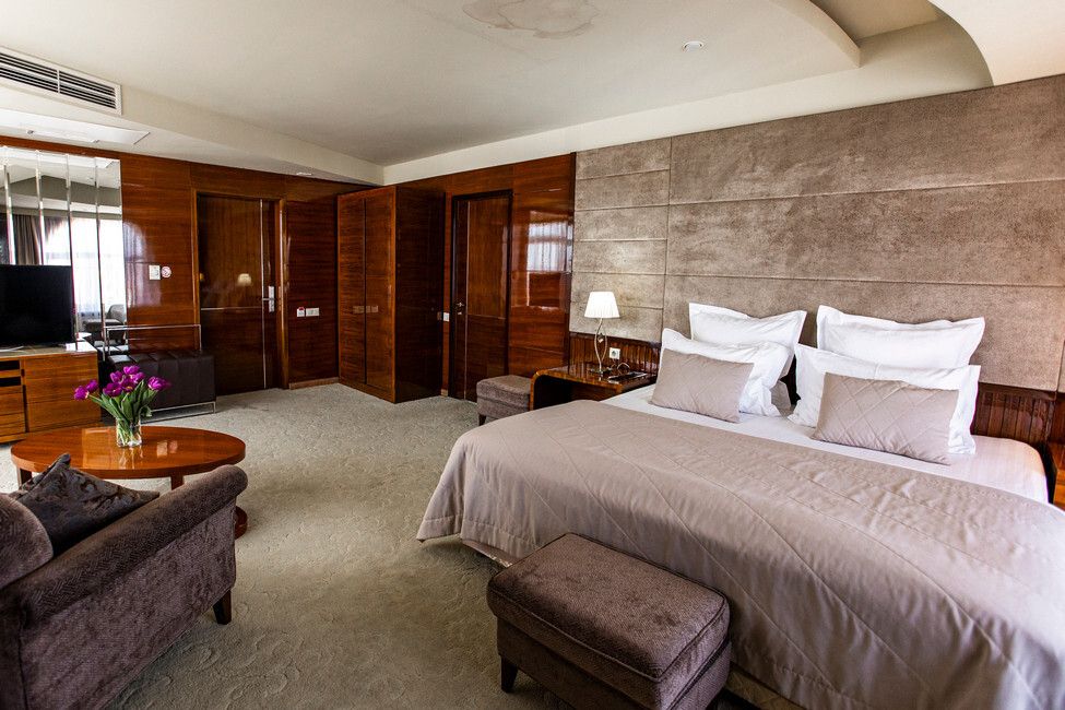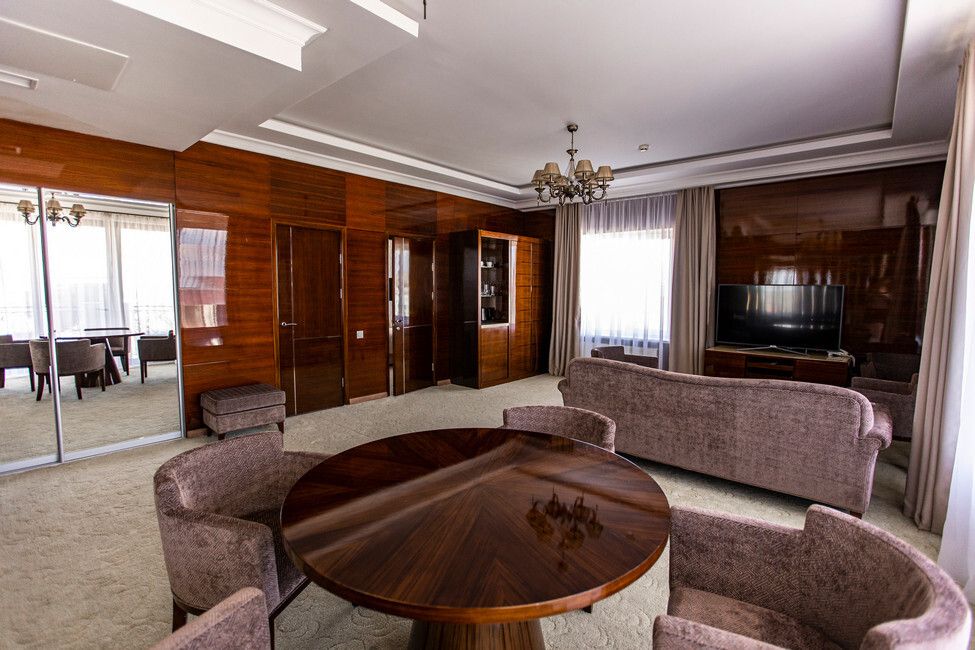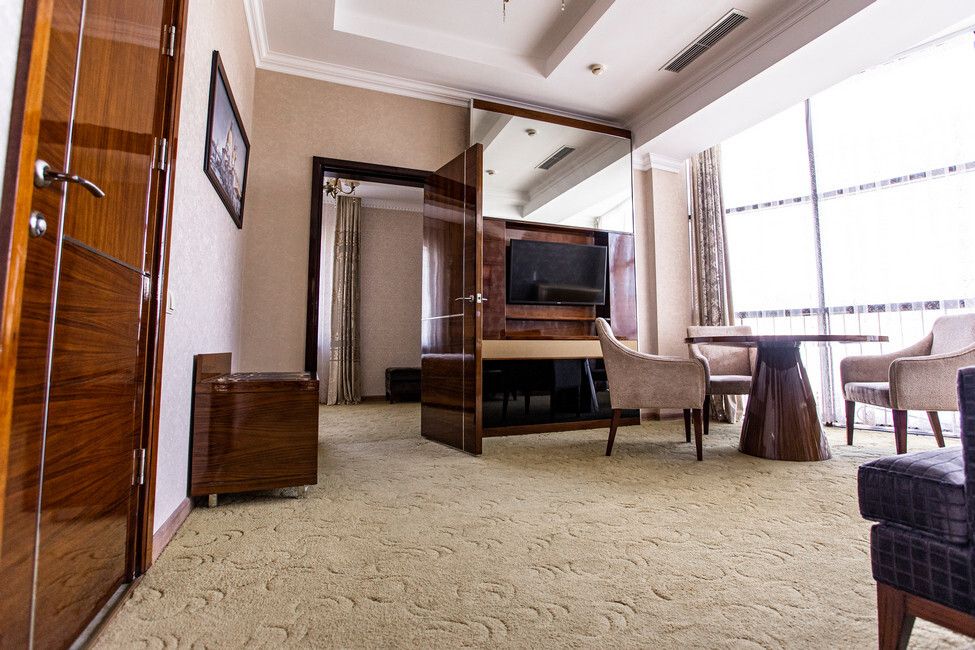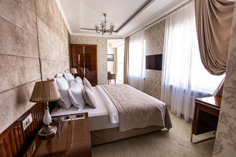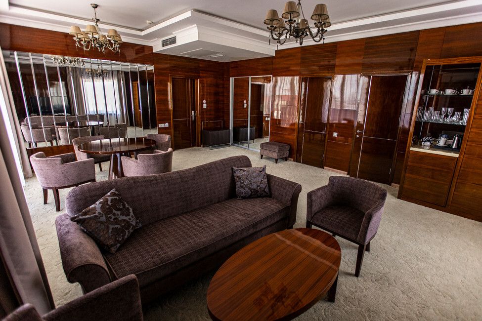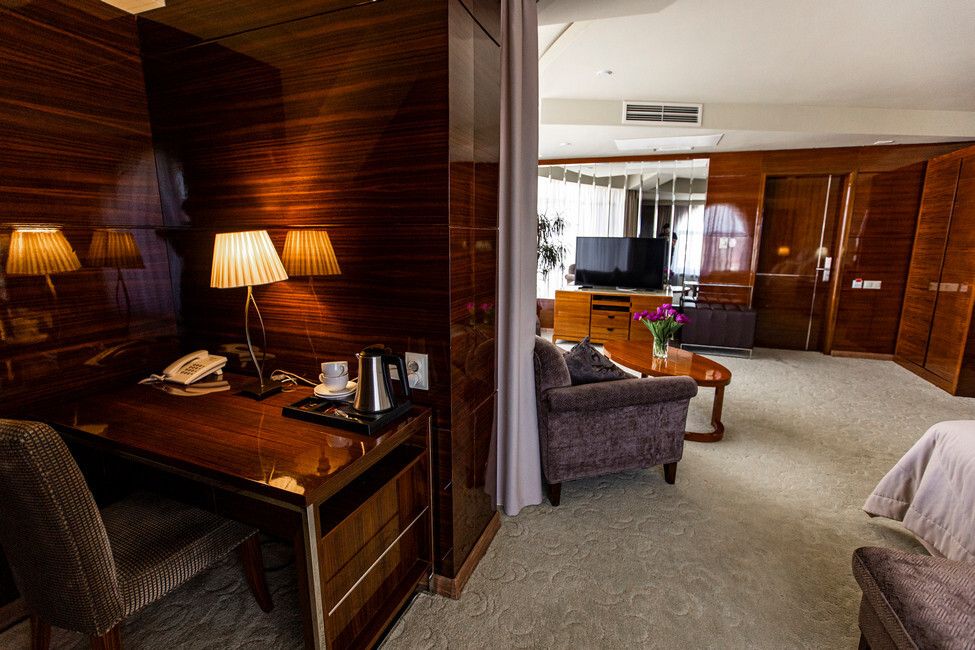 Все номера люкс имеют разную планировку, включающую в себя гостиную, спальню и большую ванную комнату. В интерьере комнат используются классические тона и элементы декора. В номерах располагаются: двуспальная кровать, гостиная с панорамными окнами и видом на город, 2 телевизора со спутниковыми каналами, кондиционер и сейф для хранения ценных вещей. Также номера оснащены отдельной ванной комнатой с первоклассным текстилем и косметикой.Услуги и удобства