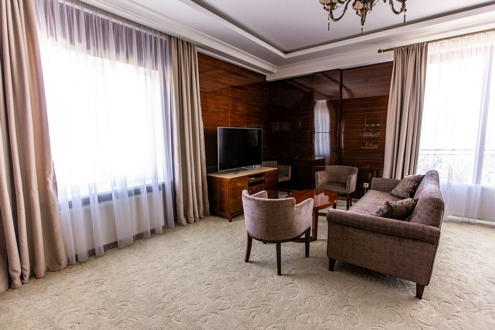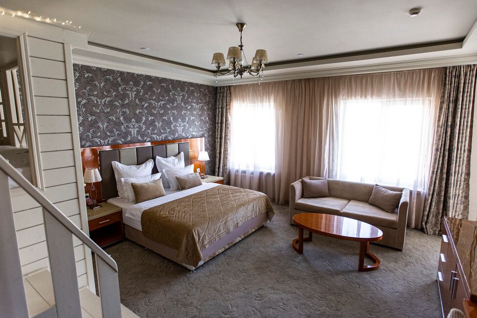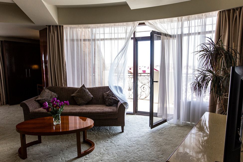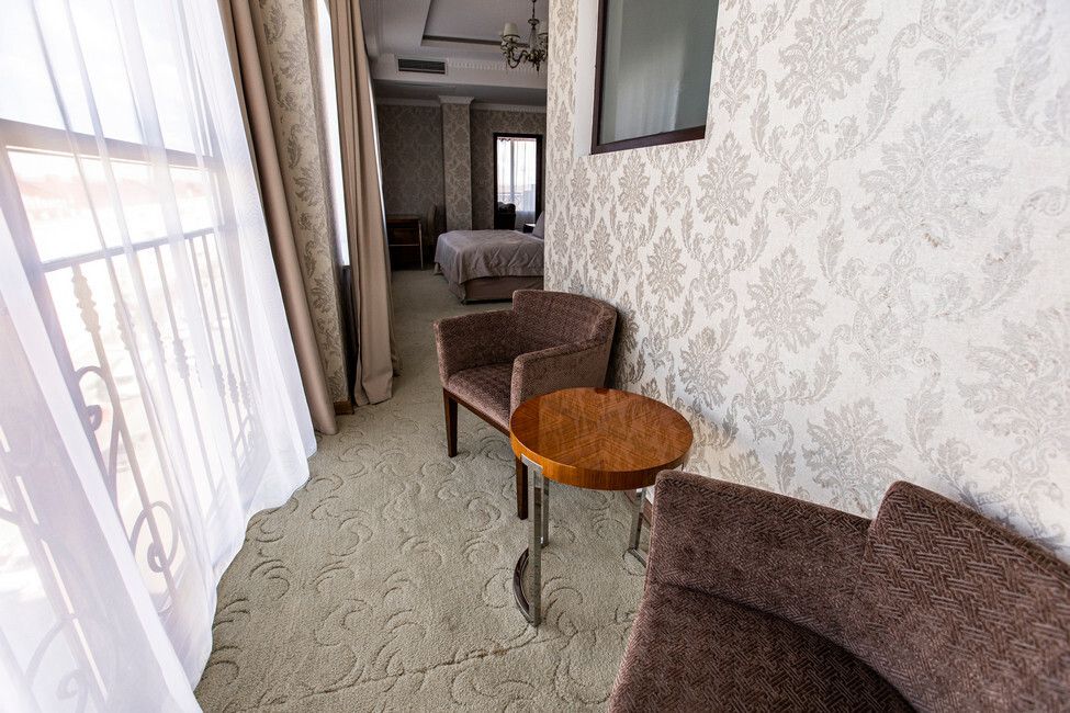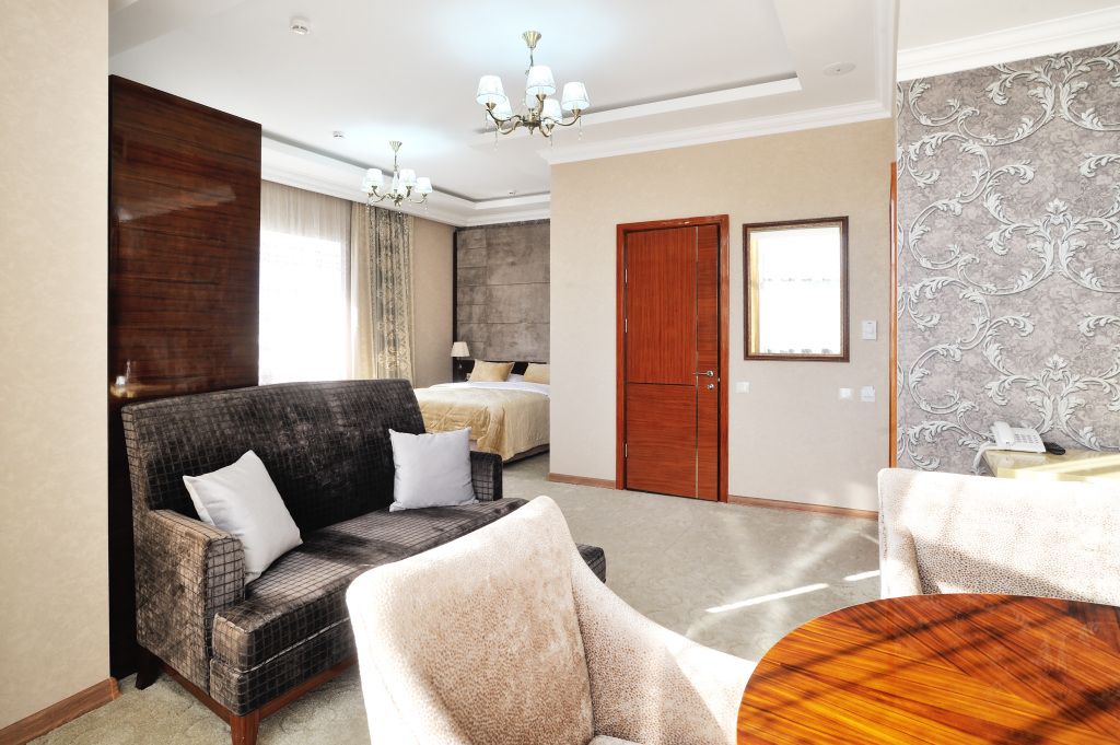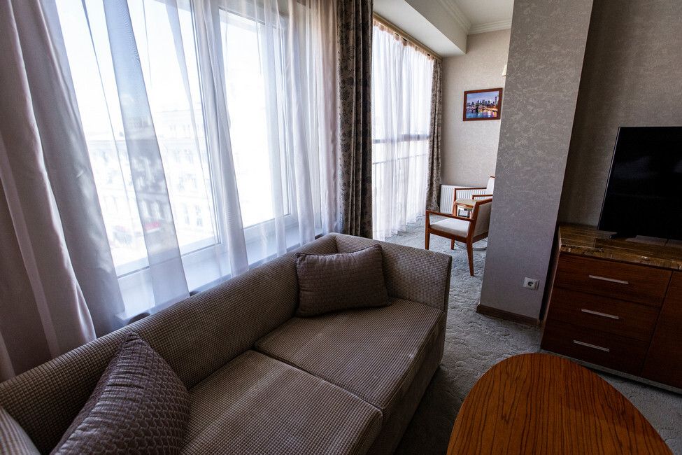 Все номера люкс имеют разную планировку, включающую в себя гостиную, спальню и большую ванную комнату. В интерьере комнат используются классические тона и элементы декора. В номерах располагаются: двуспальная кровать, гостиная с панорамными окнами и видом на город, 2 телевизора со спутниковыми каналами, кондиционер и сейф для хранения ценных вещей. Также номера оснащены отдельной ванной комнатой с первоклассным текстилем и косметикой.Услуги и удобства