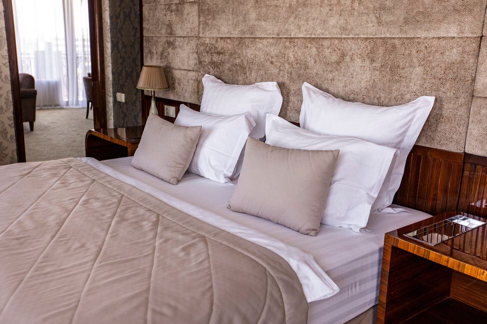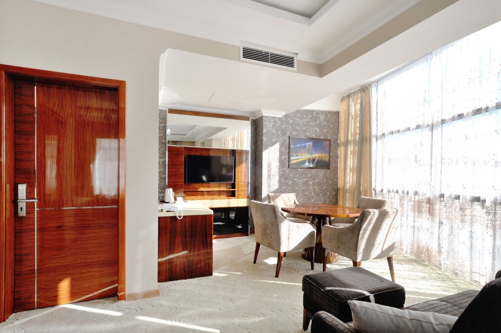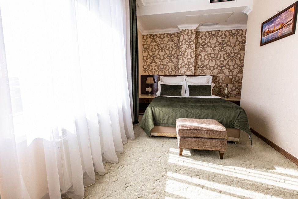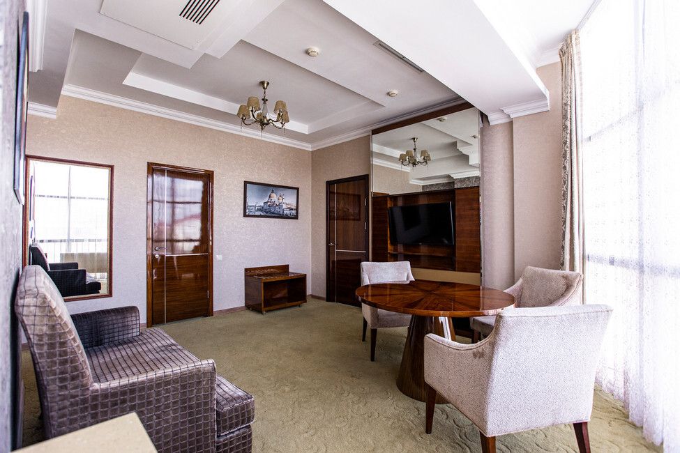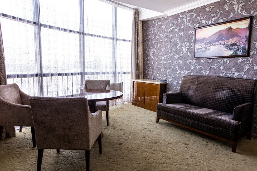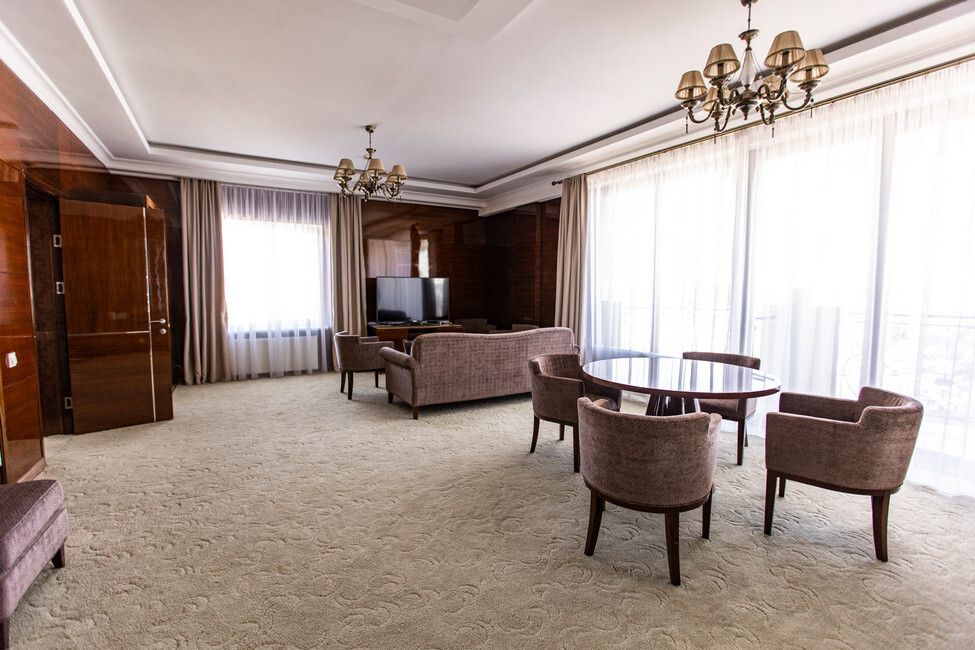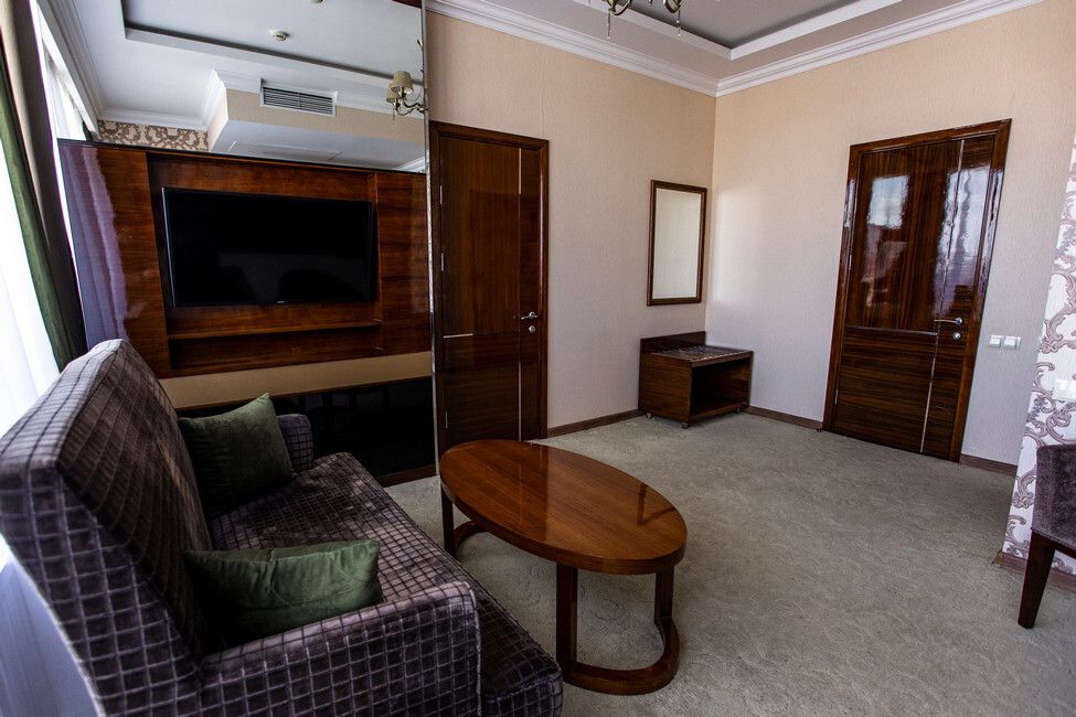 Все номера люкс имеют разную планировку, включающую в себя гостиную, спальню и большую ванную комнату. В интерьере комнат используются классические тона и элементы декора. В номерах располагаются: двуспальная кровать, гостиная с панорамными окнами и видом на город, 2 телевизора со спутниковыми каналами, кондиционер и сейф для хранения ценных вещей. Также номера оснащены отдельной ванной комнатой с первоклассным текстилем и косметикой.Услуги и удобства