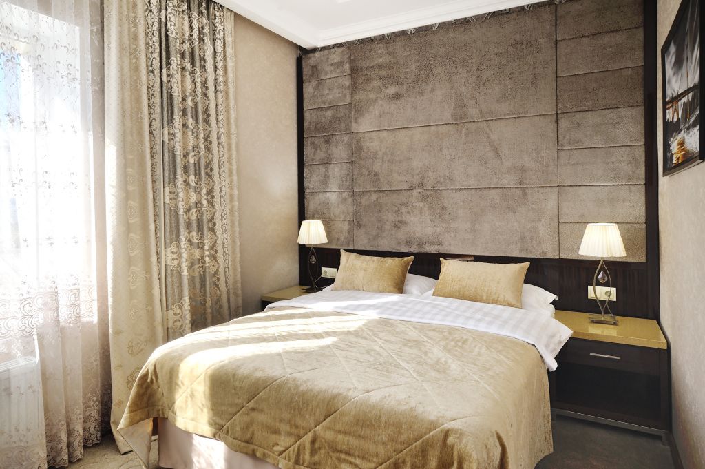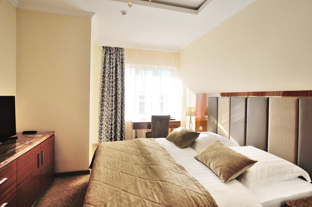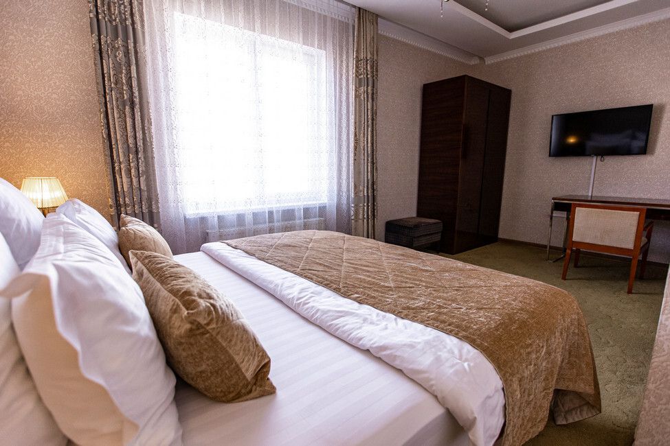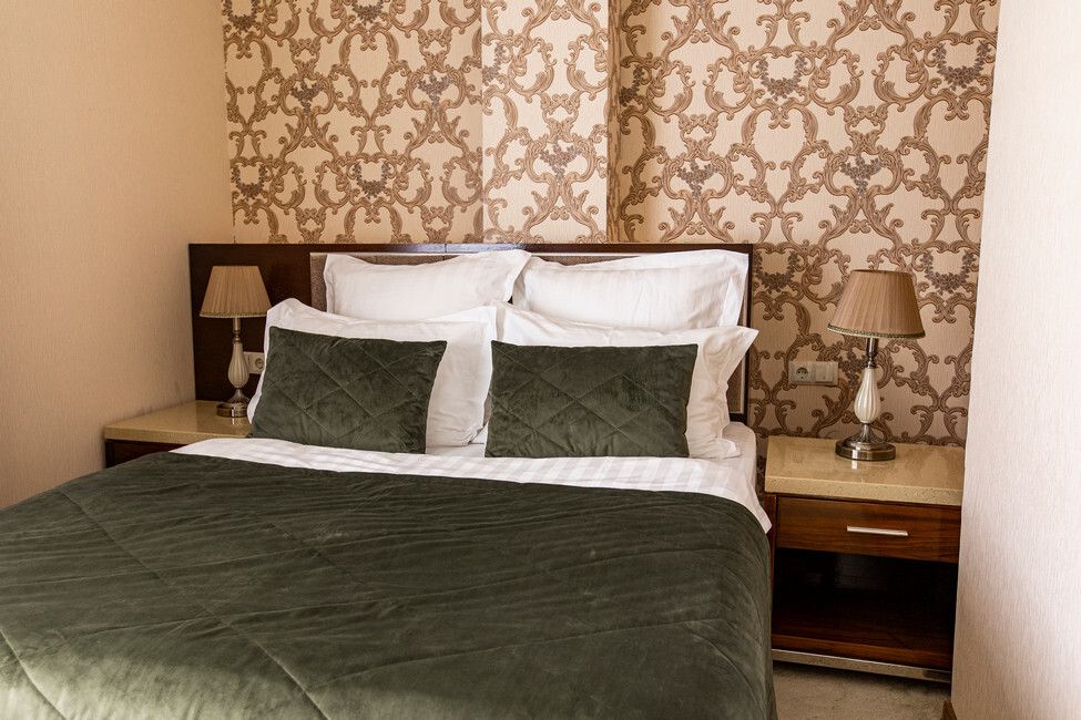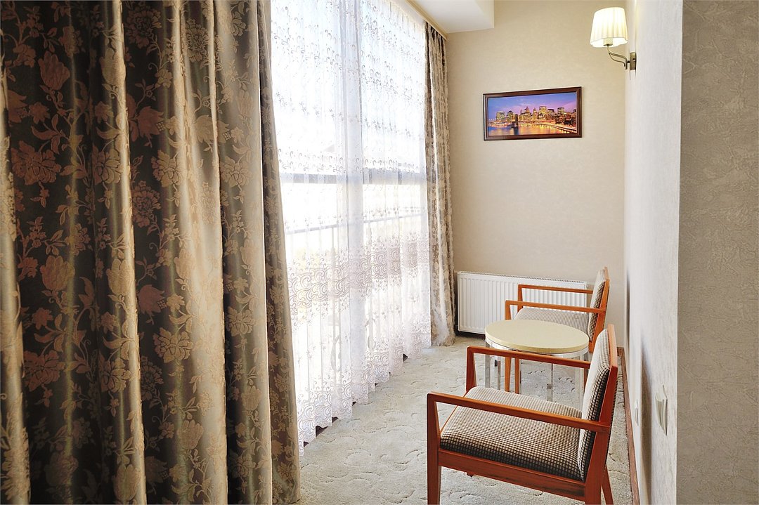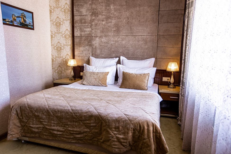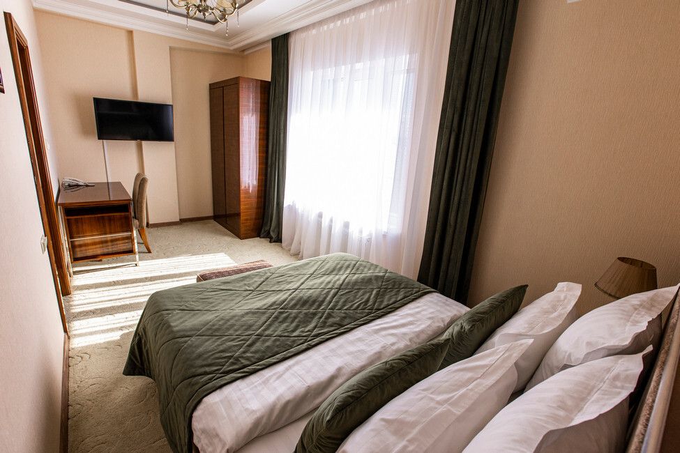 Большие однокомнатные номера в бежево-коричневых тонах с двуспальной кроватью для людей, ценящих выдержанность и удобства. Мягкое ковровое покрытие придает в номерам поистине домашний уют, а лаковая мебель изящности. Все номера оснащены телевизором с плоским экраном и спутниковыми каналами, кондиционером, рабочей зоной и сейфом для хранения ценных вещей. В номерах есть отдельная ванная комната с полотенцами и косметическими средствами. Вкусный завтрак включен в стоимость номера.Услуги и удобства