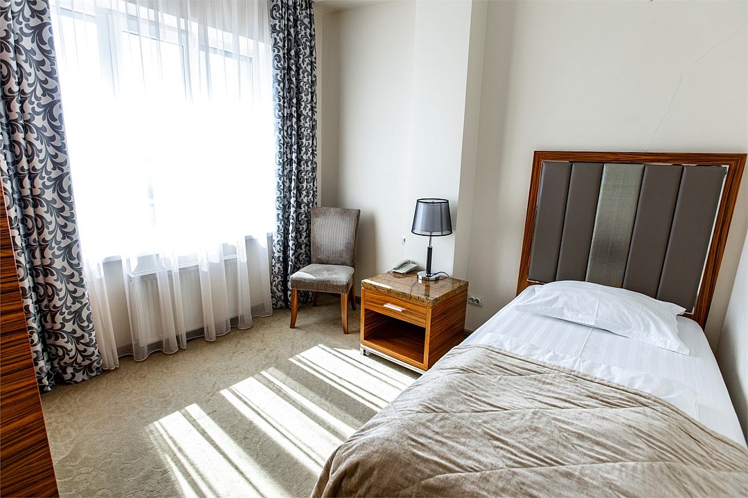 Классические одноместные номера для гостей ценящих изящную простоту и комфорт. Теплые карамельные тона придают номерам особую спокойную и уютную атмосферу. Комнаты площадью 15 кв.м. комбинируют в себе гостиную и спальную зоны. В них располагаются односпальная кровать и место для работы, оснащенное столом и стульями и телевизором с плоским экраном. Также в номере есть отдельная ванная комната с просторным душем и всеми необходимыми гигиеническими принадлежностями.Услуги и удобства