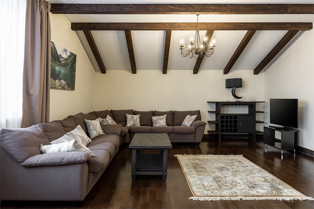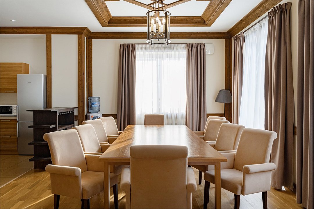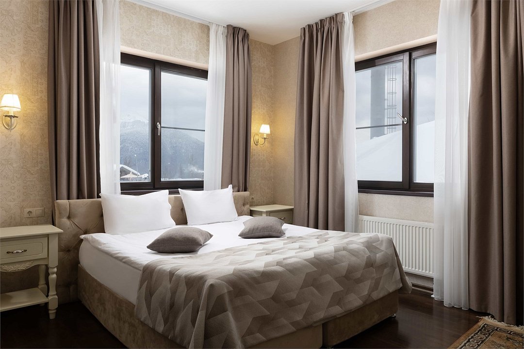 Уютное трёхэтажное шале площадью 600 кв.м. В шале: 5 спален (вместимость 9 гостей) 1 этаж: Гостиная с камином Столовая с обеденной зоной Кухня (оборудована плитой с духовым шкафом, холодильником, микроволновой печью, посудомоечной машиной, посудой и столовыми приборами, капсульной кофемашиной с капсулами, чайником) Спальня с одной односпальной кроватью и ванной комнатой, оборудованной душевой кабиной Гостевая ванная комната, оборудованная душевой кабиной 2 этаж: Комната для хранения лыж Две спальни с гостиной и ванной комнатой, оборудованной душевой кабиной (в каждой спальне возможна конфигурация кроватей: одна большая кровать double или 2 раздельные кровати twin на выбор) Спальня с ванной комнатой (в спальне возможна конфигурация кроватей: одна большая кровать double или 2 раздельные кровати twin на выбор) 3 этаж: Спальня с ванной комнатой, оборудованной душевой кабиной (в спальне возможна конфигурация кроватей: одна большая кровать double или 2 раздельные кровати twin на выбор) Гостиная с бильярдом, зоной отдыха и террасой По запросу в шале возможно дополнительное размещение 2-х гостей на дополнительных кроватях. Дополнительное место оплачивается отдельно. На территории шале: японская баня «Фурако» - горячая бочка с постоянным подогревом от печки на дровах под открытым небом. Пользование бочкой оплачивается дополнительно (20 000 руб. в день). Стоимость прогулочного билета на канатную дорогу «Олимпия» составляет 100 руб. в сутки для гостей старше 15 лет и 50 руб. в сутки для гостей от 7 до 14 лет. Дети до 6 лет включительно могут пользоваться канатной дорогой бесплатно. Приобрести билет можно будет при заселении на ресепшн. Первый подъём для заселения в отель остается бесплатным по подтверждению бронирования.Услуги и удобства