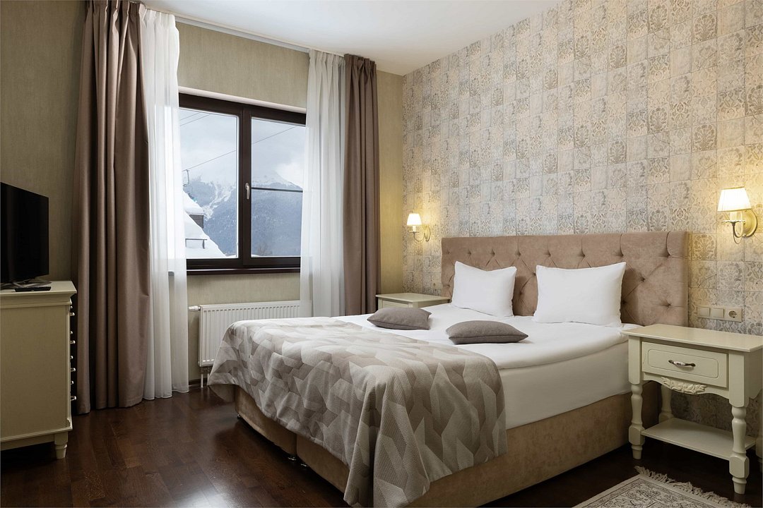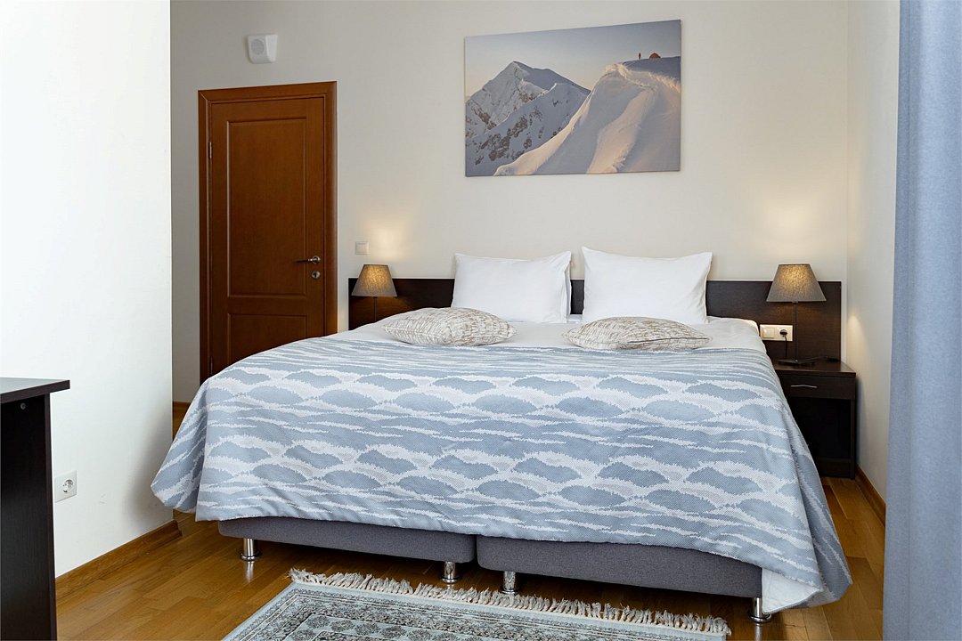 Двухместный стандарт с балконом. Площадь номера - от 17 м². В номере: большая двуспальная кровать или 2 раздельные кровати (на выбор), чайник, кофемашина, холодильник, халаты и тапочки, ванная комната, оборудованная душевой кабиной. Проживание с питомцами в номерах категории «Стандарт с балконом» не допускается. Стоимость прогулочного билета на канатную дорогу «Олимпия» составляет 100 руб. в сутки для гостей старше 15 лет и 50 руб. в сутки для гостей от 7 до 14 лет. Дети до 6 лет включительно могут пользоваться канатной дорогой бесплатно. Приобрести билет можно будет при заселении на ресепшн. Первый подъём для заселения в отель остается бесплатным по подтверждению бронирования.Услуги и удобства
