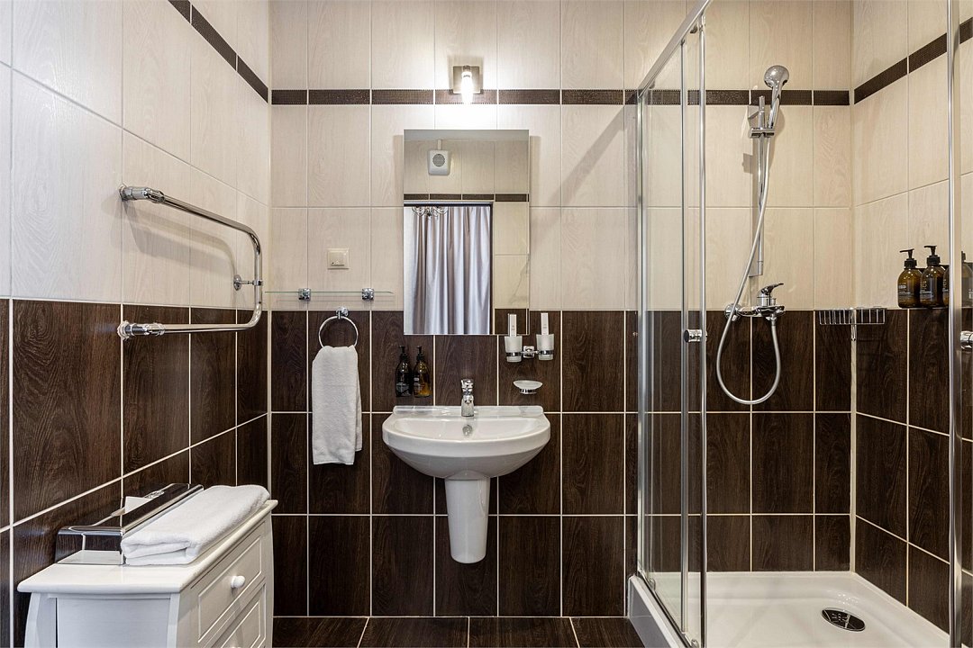 1 спальня с ванной комнатой (туалет+душевая кабина+раковина);