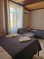 Для 2х человек (двуспальная кровать) и дополнительное место — тахта (оплачивается отдельно).
