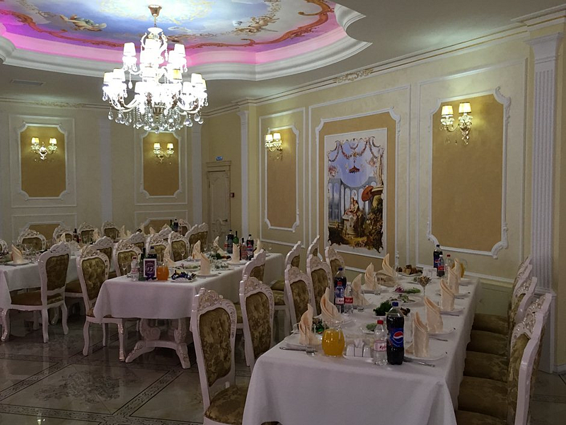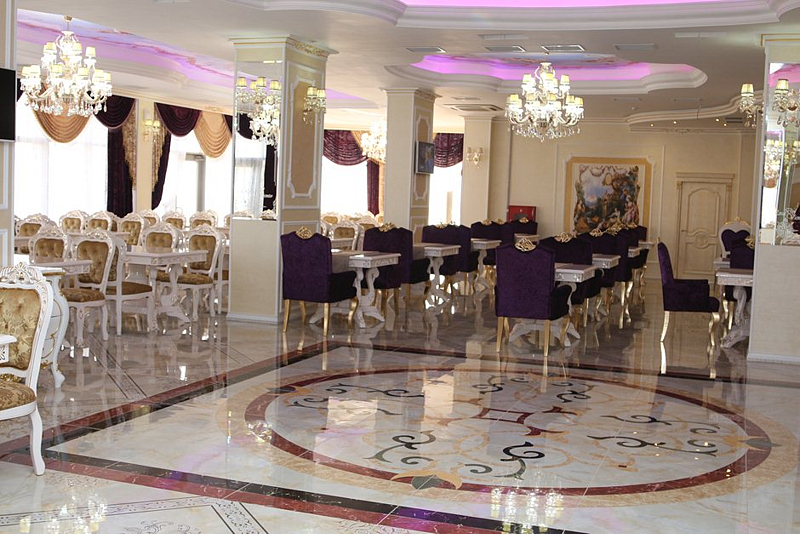 На 1-м этаже отеля находится ресторан «RosaDelViento», поражающий богатством своего убранства и кулинарными изысками европейской кухни. Ресторан «RosaDelViento» — это идеальное место как для отдыха, деловых обедов, семейных ужинов, так и место проведения свадеб, юбилеев, торжеств. На всей территории отеля действует wi-fi.