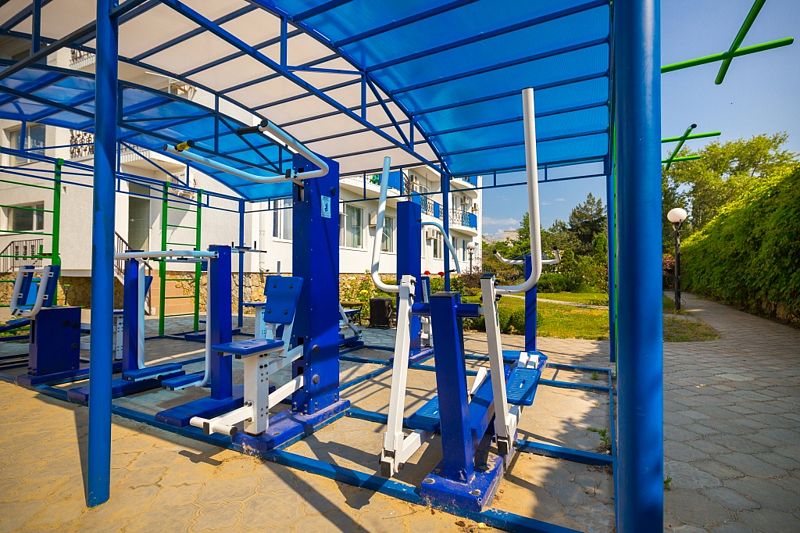 На территории санатория расположен уличный спортивный комплекс, который позволит потренироваться на воздухе. К услугам гостей оборудованная искусственным покрытием площадка, на которой могут без ограничения по времени заниматься взрослые и дети.