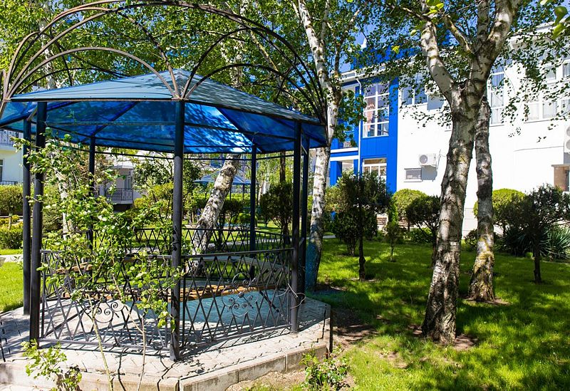 Территория санатория огорожена и находится под круглосуточной охраной, что обеспечивает безопасность гостей. Здесь много деревьев, зелёных лужаек, цветников, есть фонтан, тенистые аллеи, скамейки, декоративные элементы, уютные беседки и зоны отдыха. В распоряжении гостей санатория крытый бассейн с детским отделением и открытый сезонный мини-аквапарк с подогревом. Также работают финская баня, хамам и массажный кабинет. Для любителей активного отдыха открыты тренажёрный зал, уличный спортивный тренажёр и настольный теннис. Разнообразить отдых можно посещением библиотеки, кинопоказов, бильярда и шахмат.
