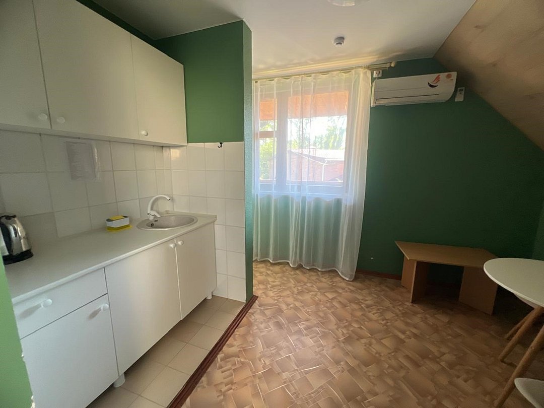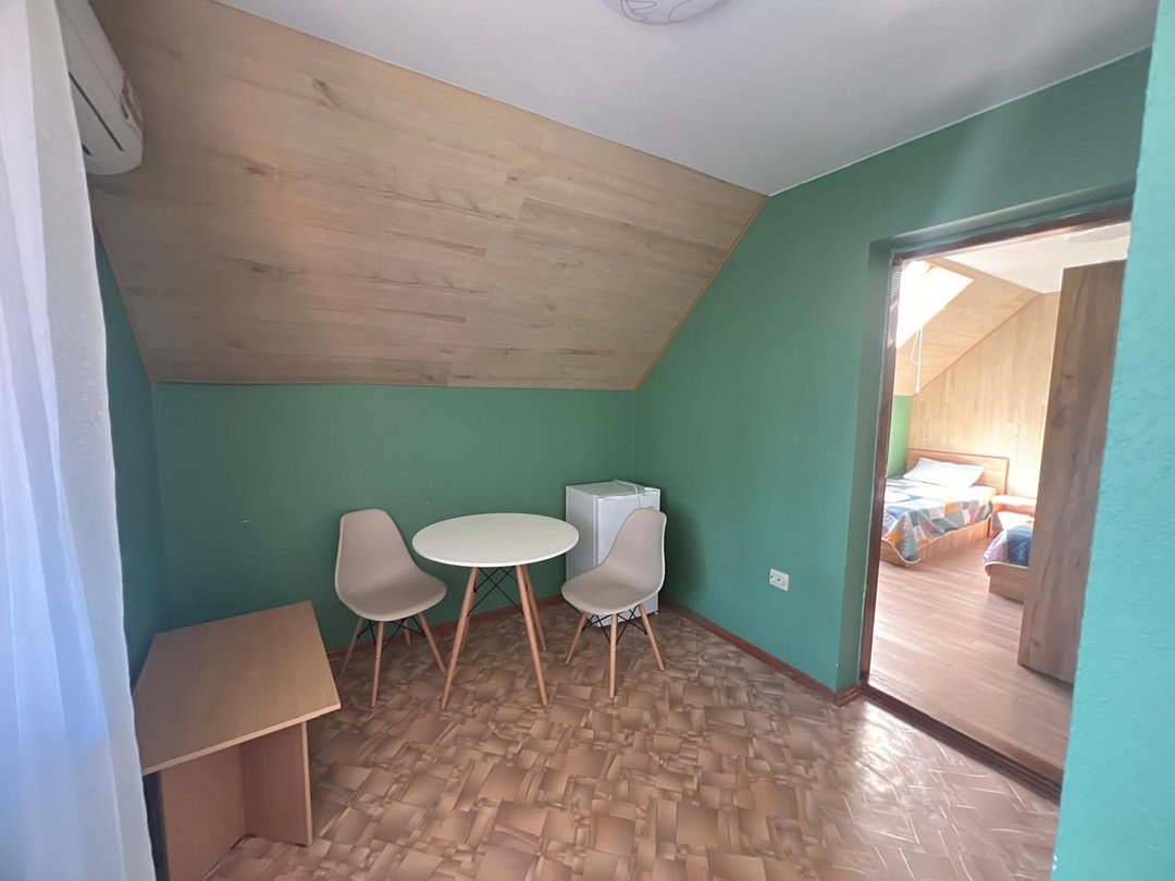 Просторный номер: 2х спальная кровать, односпальная кровать,шкаф, тумбочки, телевизор, кондиционер. Кухонный уголок: стол, холодильник, эл.чайникСтандарт 6-ти местный