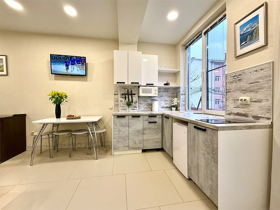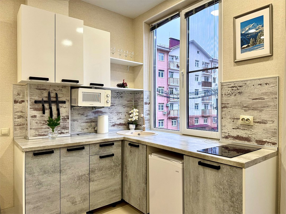 Апартаменты № 12 «Стандарт»: уютная евродвушка для комфортного отдыха Ищете уютное пространство для отдыха небольшой семьёй или в кругу друзей? Приглашаем вас в апартаменты «Стандарт» — продуманное жильё, где гармонично сочетаются функциональность, удобство и выгодное расположение. Что вас ждёт в апартаментах Просторная евродвушка на первом этаже трёхэтажного здания включает: светлую гостиную‑кухню — идеальное место для совместных завтраков и вечерних посиделок; уютную спальню для спокойного сна; современный санузел; общую площадь — 26 кв. м. Размещение Апартаменты комфортно разместят компанию из 3–4 человек: двуспальная кровать (140×200 см); диван‑кровать (140×200 см). Всё необходимое для жизни Мы позаботились о том, чтобы у вас было всё для беззаботного пребывания: кухня: индукционная печь, микроволновая печь, холодильник, электрочайник, полный набор посуды и кухонной утвари; техника: телевизор, кондиционер, стиральная машина; удобства: утюг с гладильной доской, фен, туалетные принадлежности; связь: стабильный Wi‑Fi; комфорт: система «тёплый пол» (работает в отопительный сезон). Удобное расположение Район отличается развитой инфраструктурой и транспортной доступностью: бесплатная придомовая парковка (места — при наличии свободных); в шаговой доступности — казино «Сочи» и концертно‑развлекательная площадка «RED‑арена»; рядом магазины «Магнит» и «Пятёрочка», столовые «Патисон» и «Все ли Поели»; остановка общественного транспорта «Мегафон» — в пешей доступности; до главной канатной дороги «Горки Город» и ключевых объектов Курорта Красная Поляна — не более 15 минут пешком или пара минут на автобусе. Бесконтактное заселение: быстро и безопасно Мы используем современную систему бесконтактного заселения. Чтобы получить код доступа к апартаментам, нужно: подписать онлайн‑договор аренды; пройти онлайн‑регистрацию по паспорту; внести предоплату; оплатить залог в размере 5 000 рублей (возвращается в течение 1–5 рабочих дней после выезда и проверки апартаментов). Важно! Перед бронированием рекомендуем связаться с администратором: мы с радостью ответим на ваши вопросы и учтём все пожелания, чтобы ваш отдых прошёл идеально. Выберите апартаменты № 12 «Стандарт» — пространство, где каждый момент вашего пребывания будет наполнен комфортом и приятными впечатлениями!Услуги и удобства