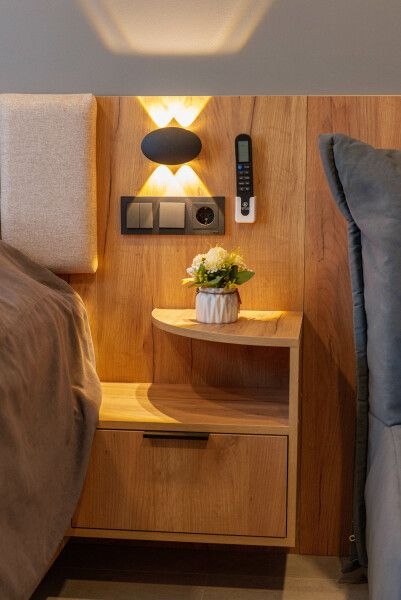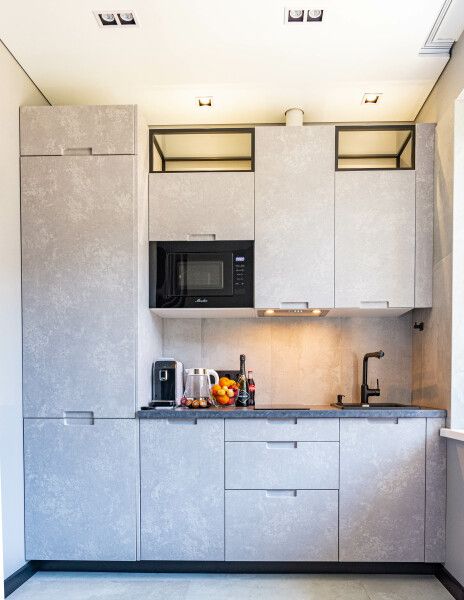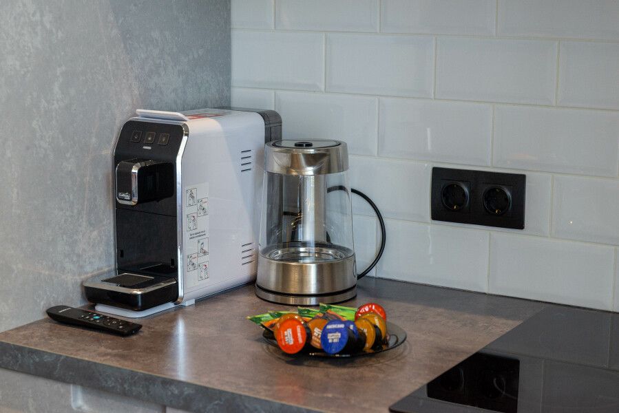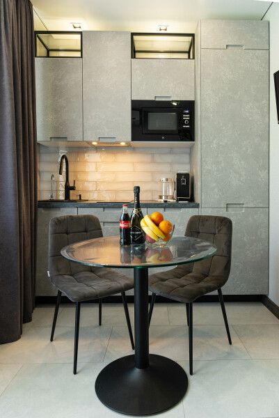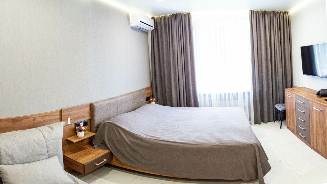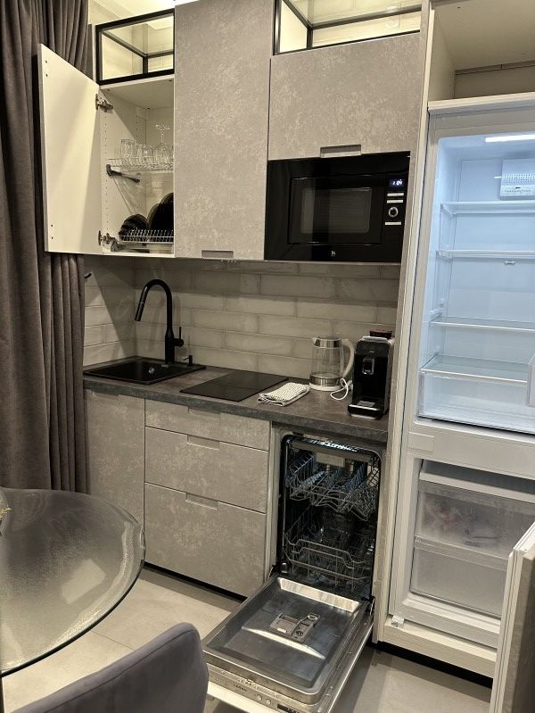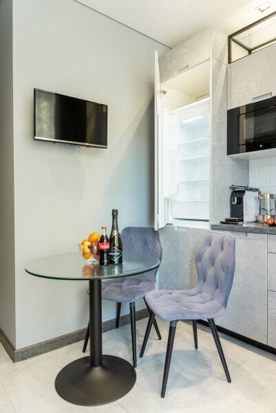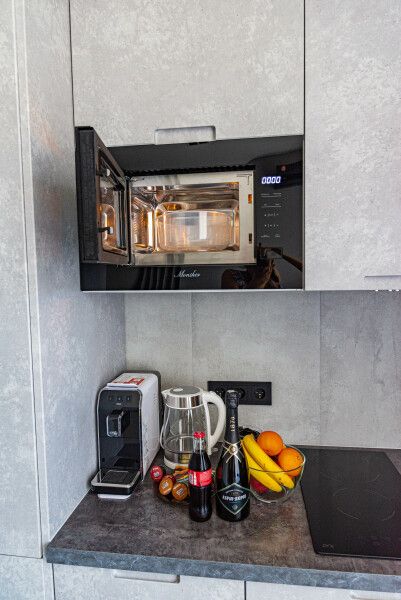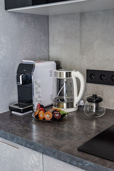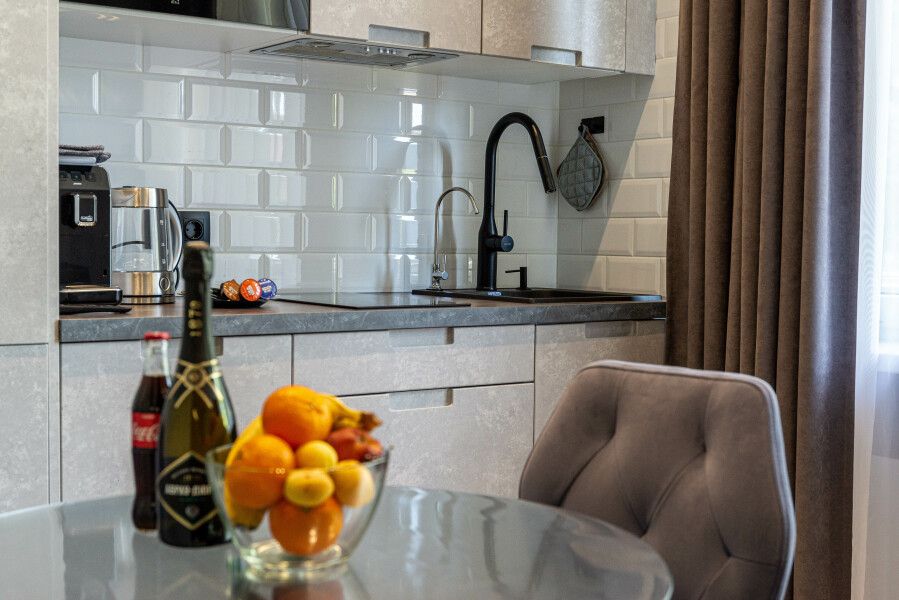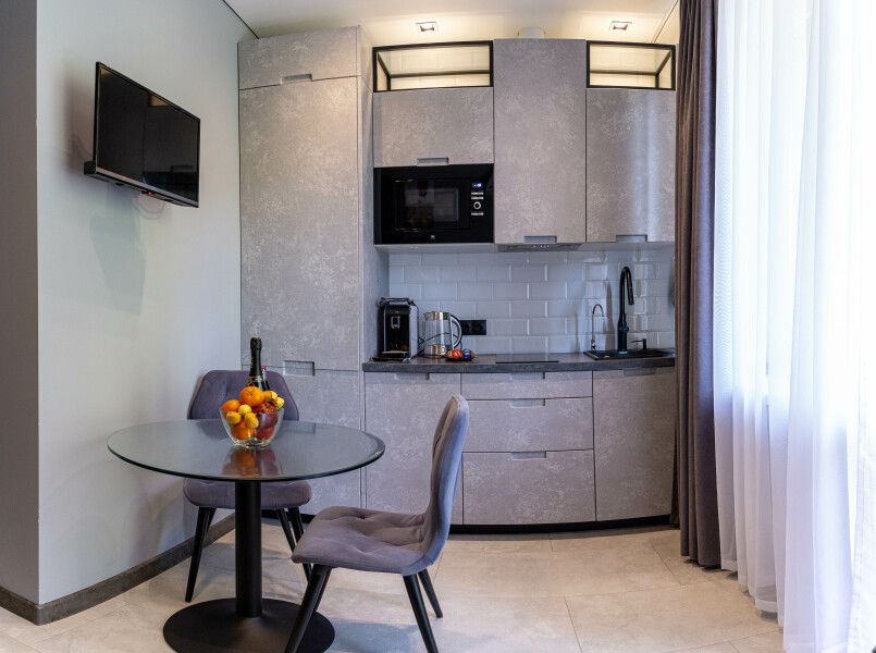 Номера оборудованы уютными спальнями, современной техникой, включая телевизор, кофемашину, посудомоечную и стиральную машины и кондиционер. А собственная кухня оснащена всем необходимым для самостоятельной готовки.