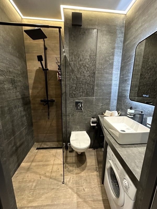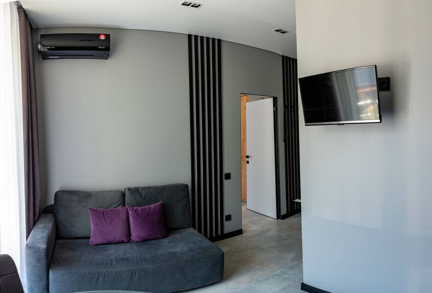 В номере есть все удобства, Wi-Fi, 2 телевизора, чайник, кофемашина, посудомоечная машина, стиральная машина, электрическая плита, холодильник, 2 кондиционера, микроволновая печь, гигиенический душ, питьевая вода (обратный осмос), бойлер, фен, утюг, посуда.