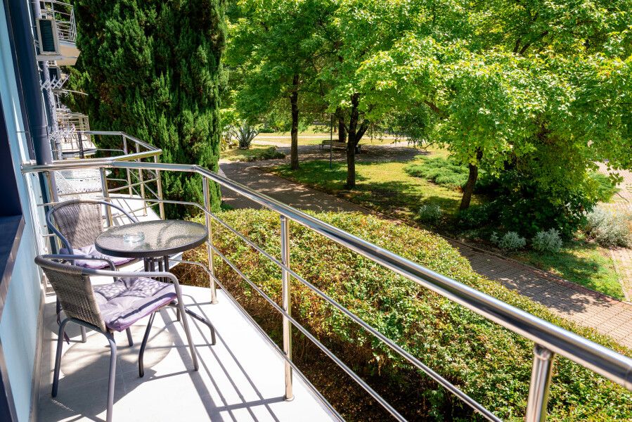 Апартаменты окружены живописным парком площадью 3,5 гектара с удобной мангальной зоной. Из окон открывается прекрасный вид на горы, а до моря можно дойти пешком всего за 5 минут.