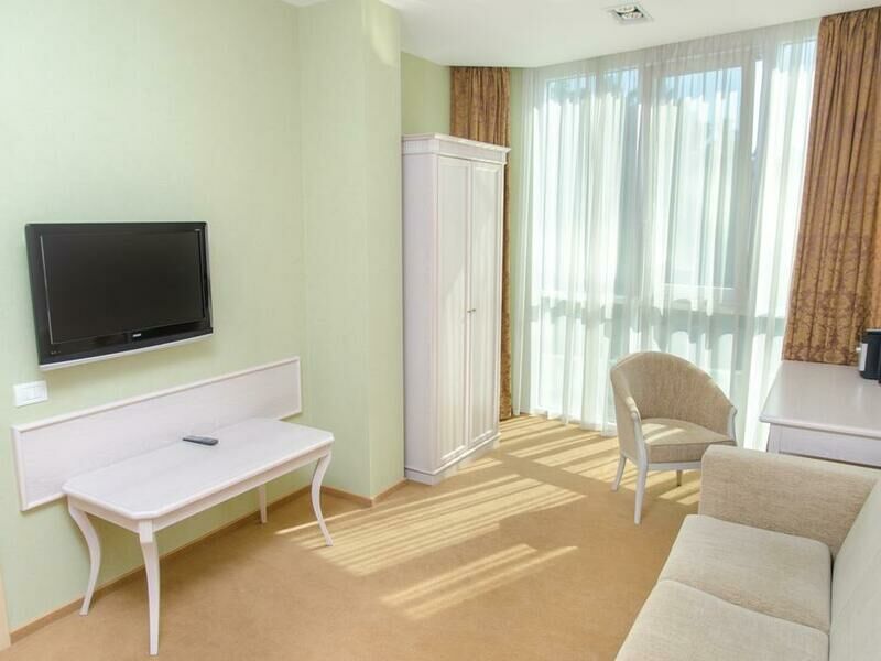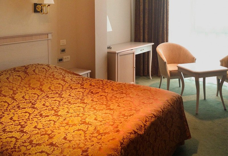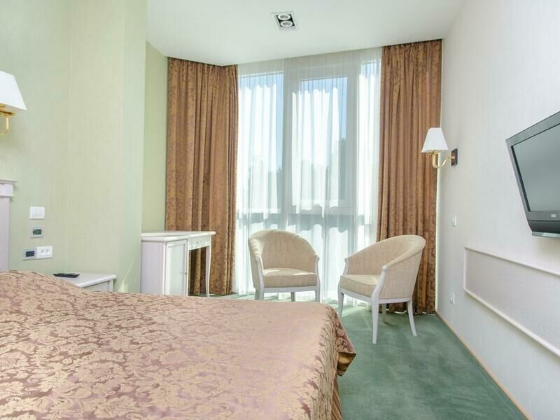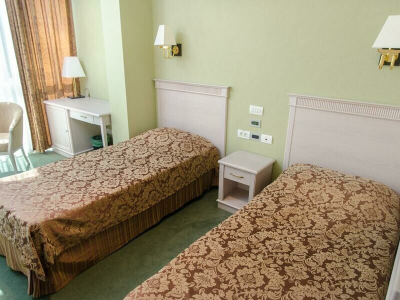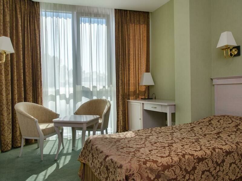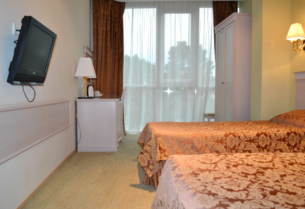 Комплекс включает семиэтажный жилой корпус (построенный в 70-х годах и реконструированный в 2009 году), отдельный лечебно-оздоровительный центр, двухуровневый ресторан, клуб и круглогодично работающий крытый бассейн с панорамным остеклением. Номера пансионата кондиционируются, в них установлены небольшие холодильники, чайники и наборы посуды, TV, телефоны; отдельные санузлы укомплектованы всем необходимым, мебель и техника регулярно обновляется.