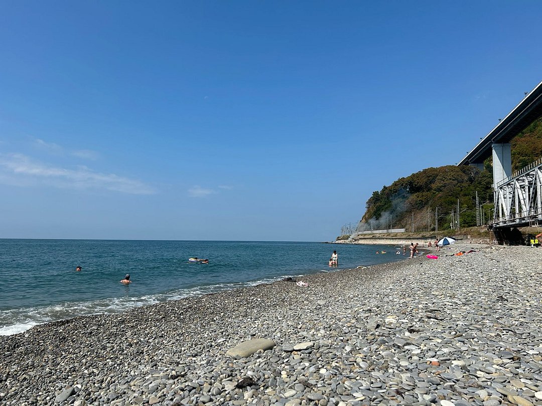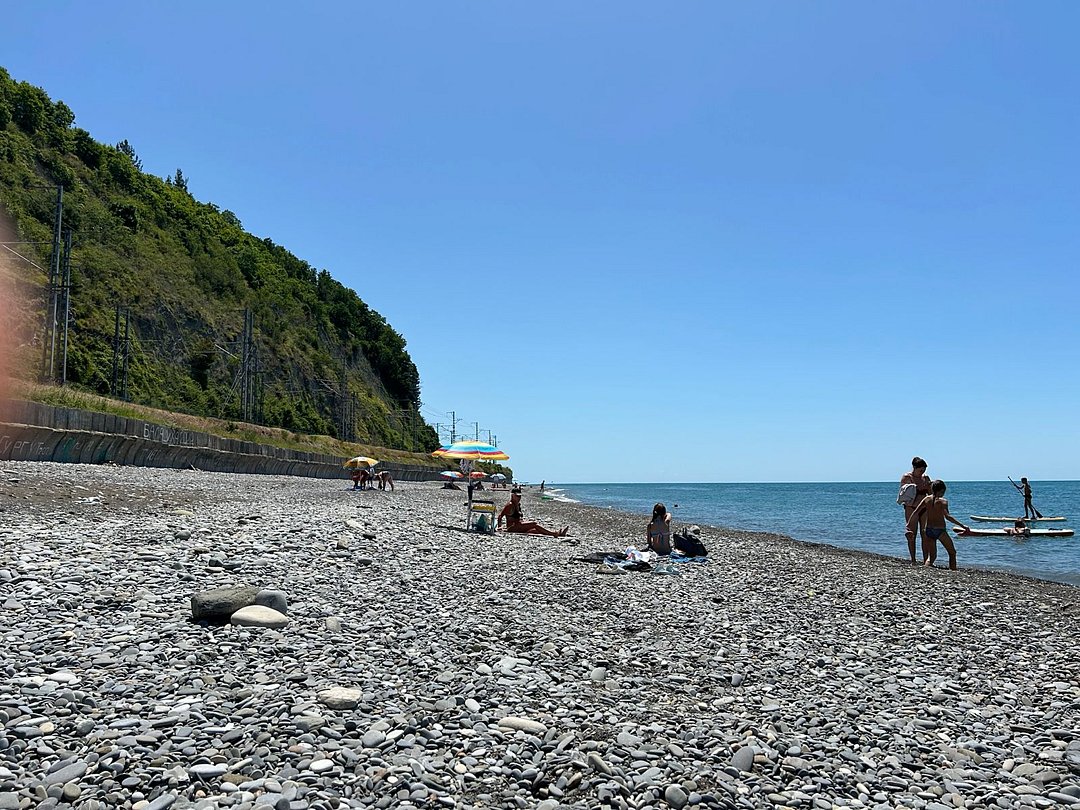 До моря пешком около 20 минут неспешным шагом. Дорога к морю по ровной, тенистой улица Амурская. Пляжная полоса широкая и малолюдная, галька средне-мелкая, вход в море пологий.